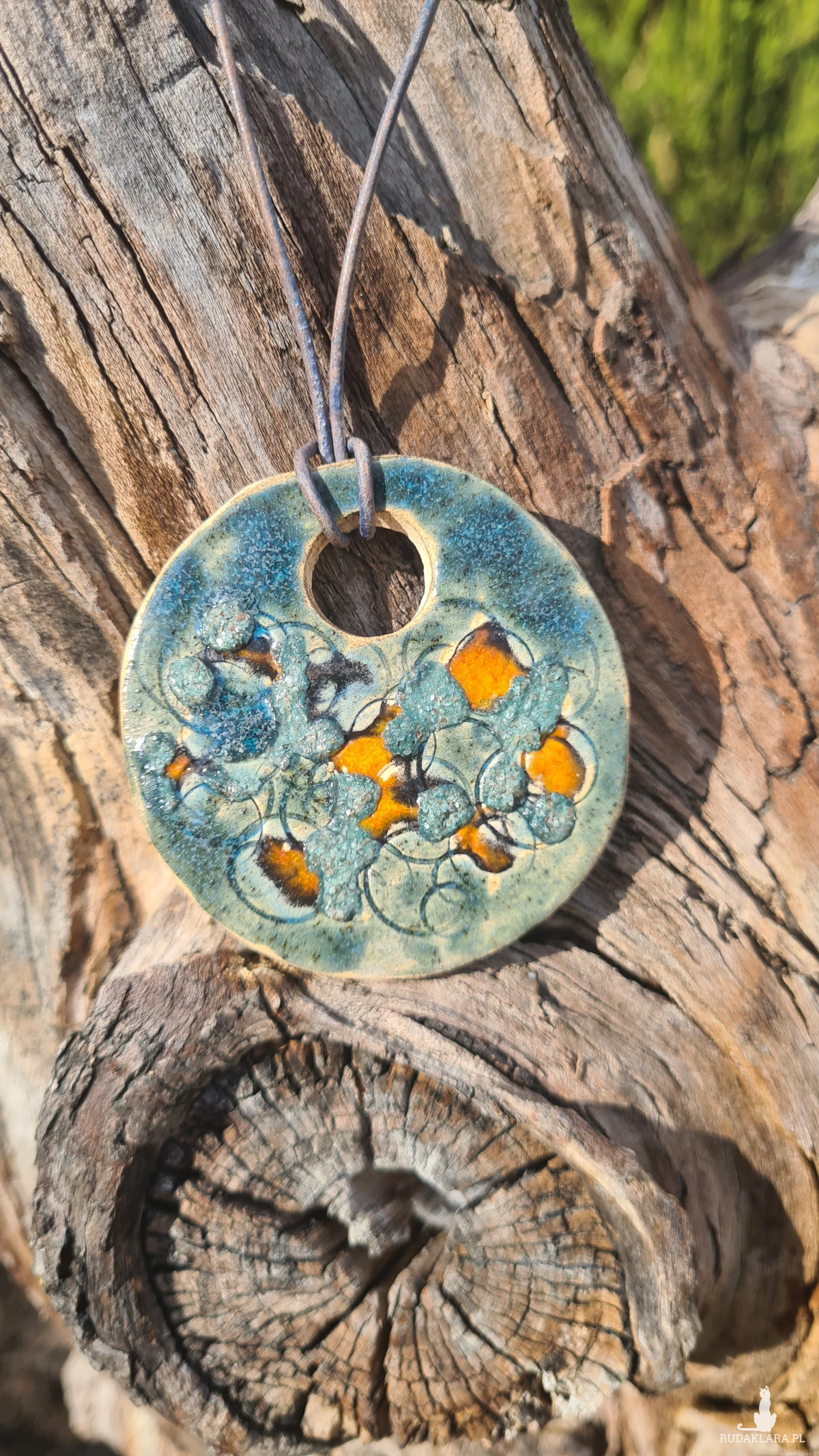 Ceramiczny wisior  wykonany z jasnej gliny, szkliwiony i 2 - krotnie wypalany w piecu ceramicznym. Piękny i oryginalny dodatek.