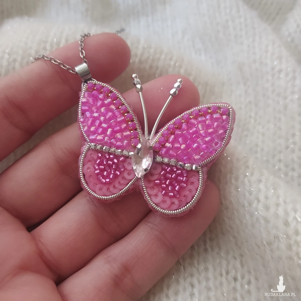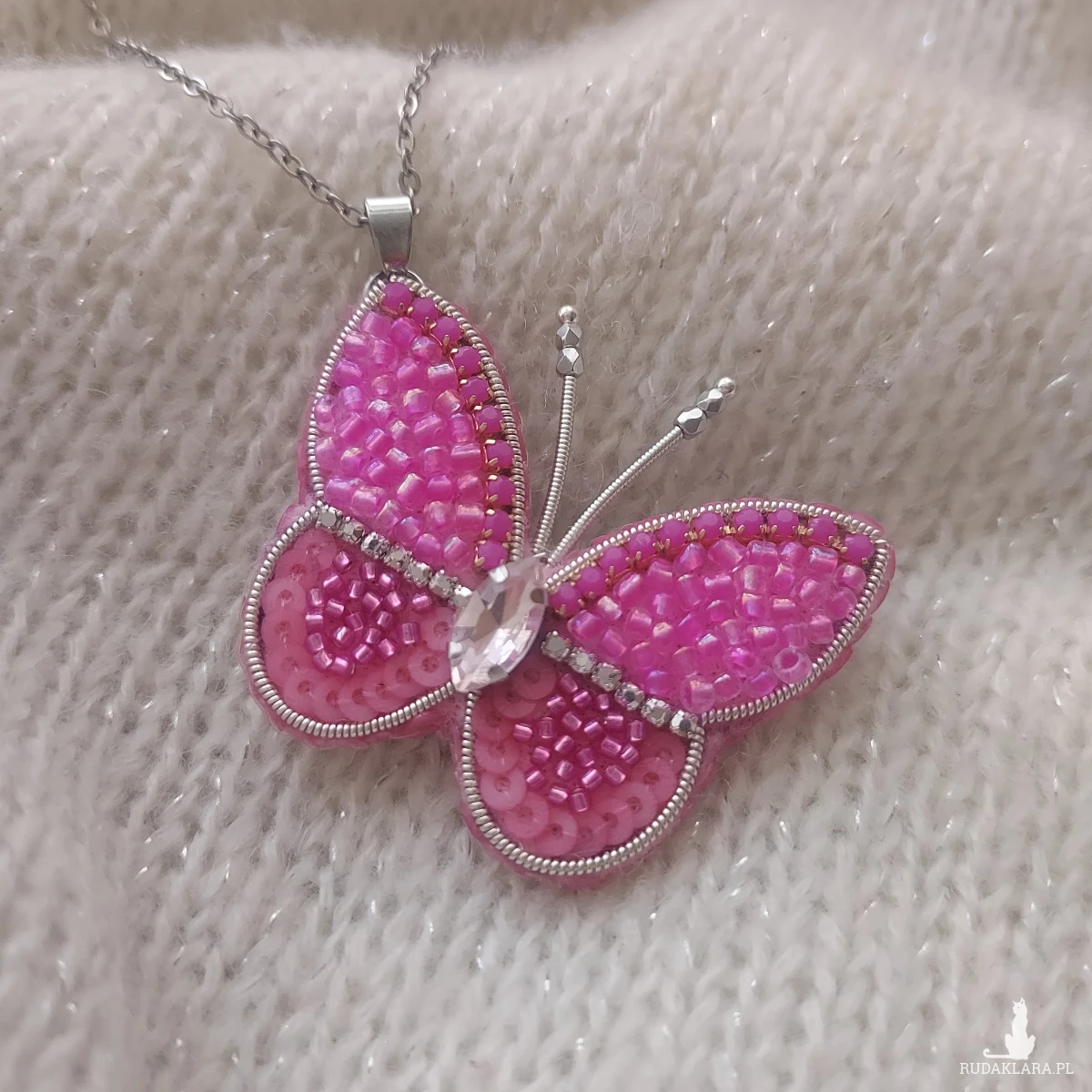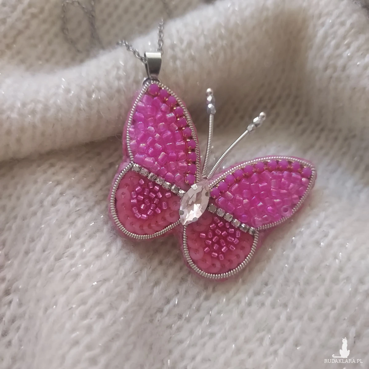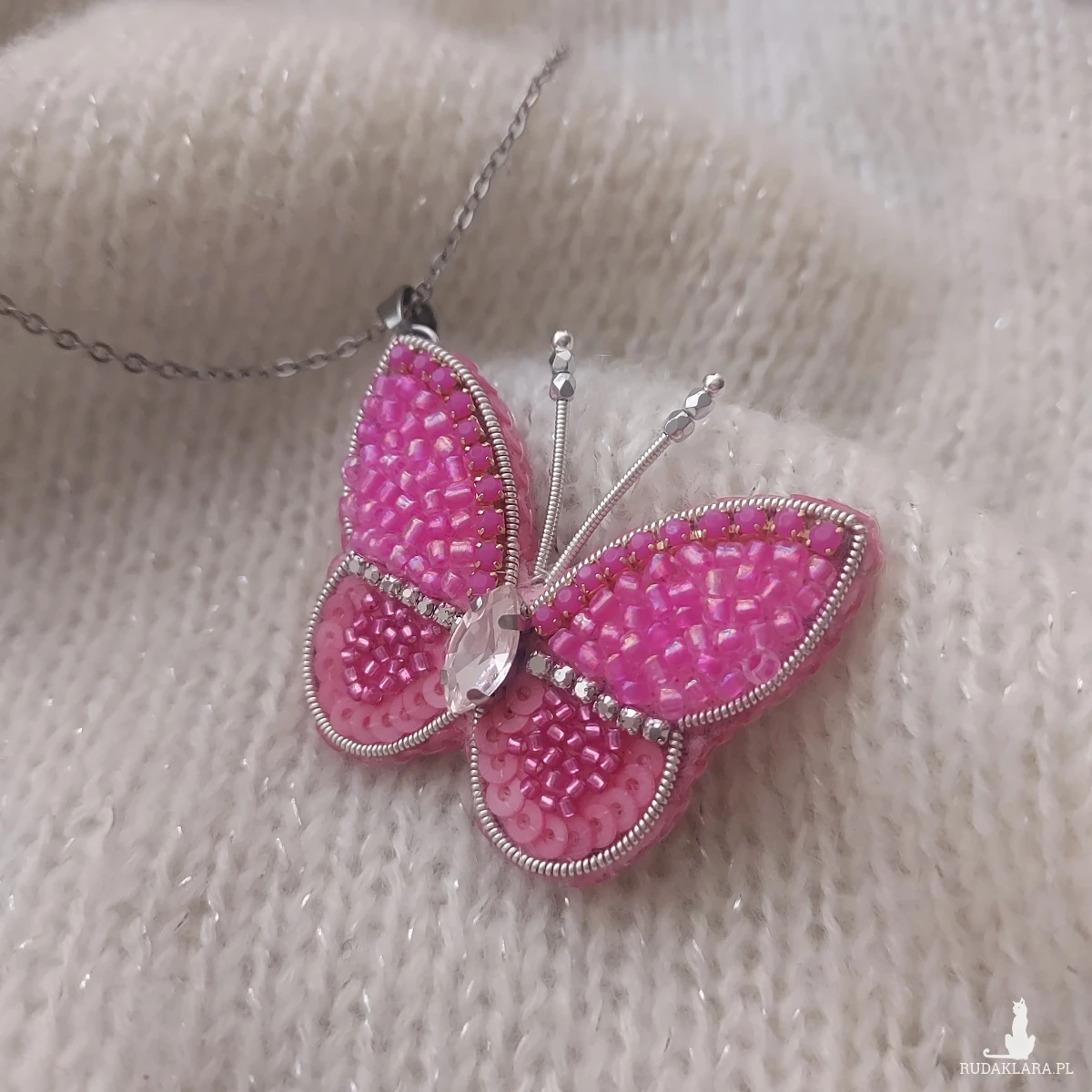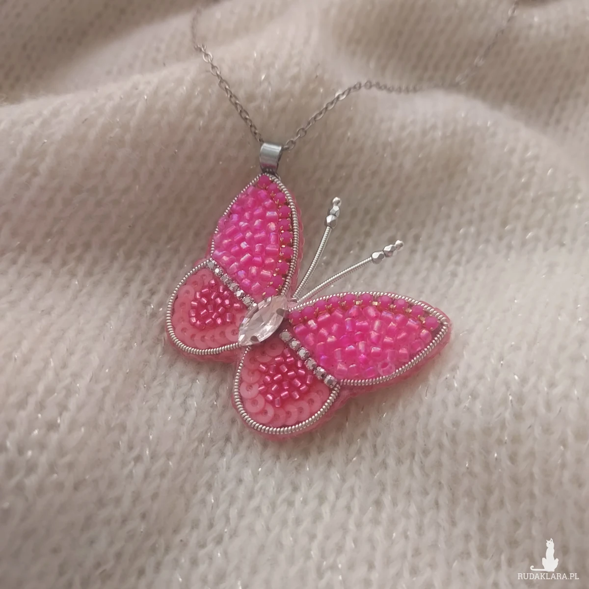Wyjątkowy, letni wisior motylek w kolorze różowym- nie tylko dla miłośniczek motyli i wiosenno-letnich łąk.
