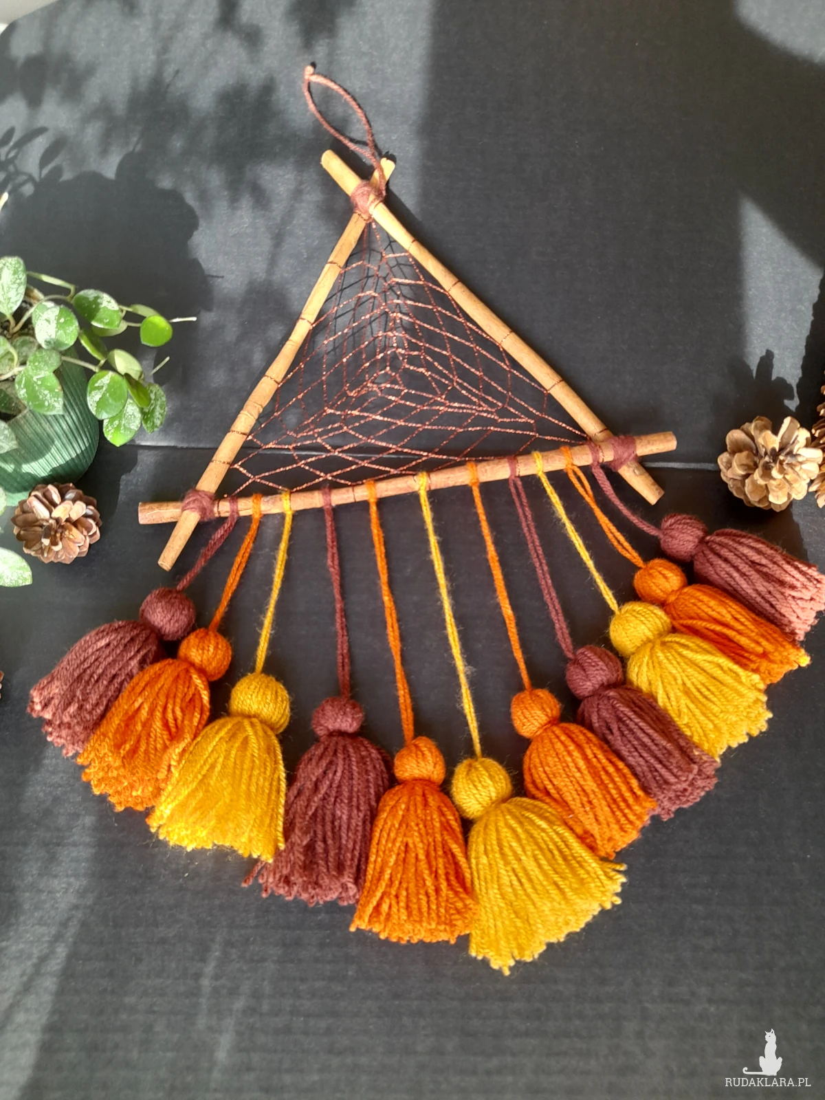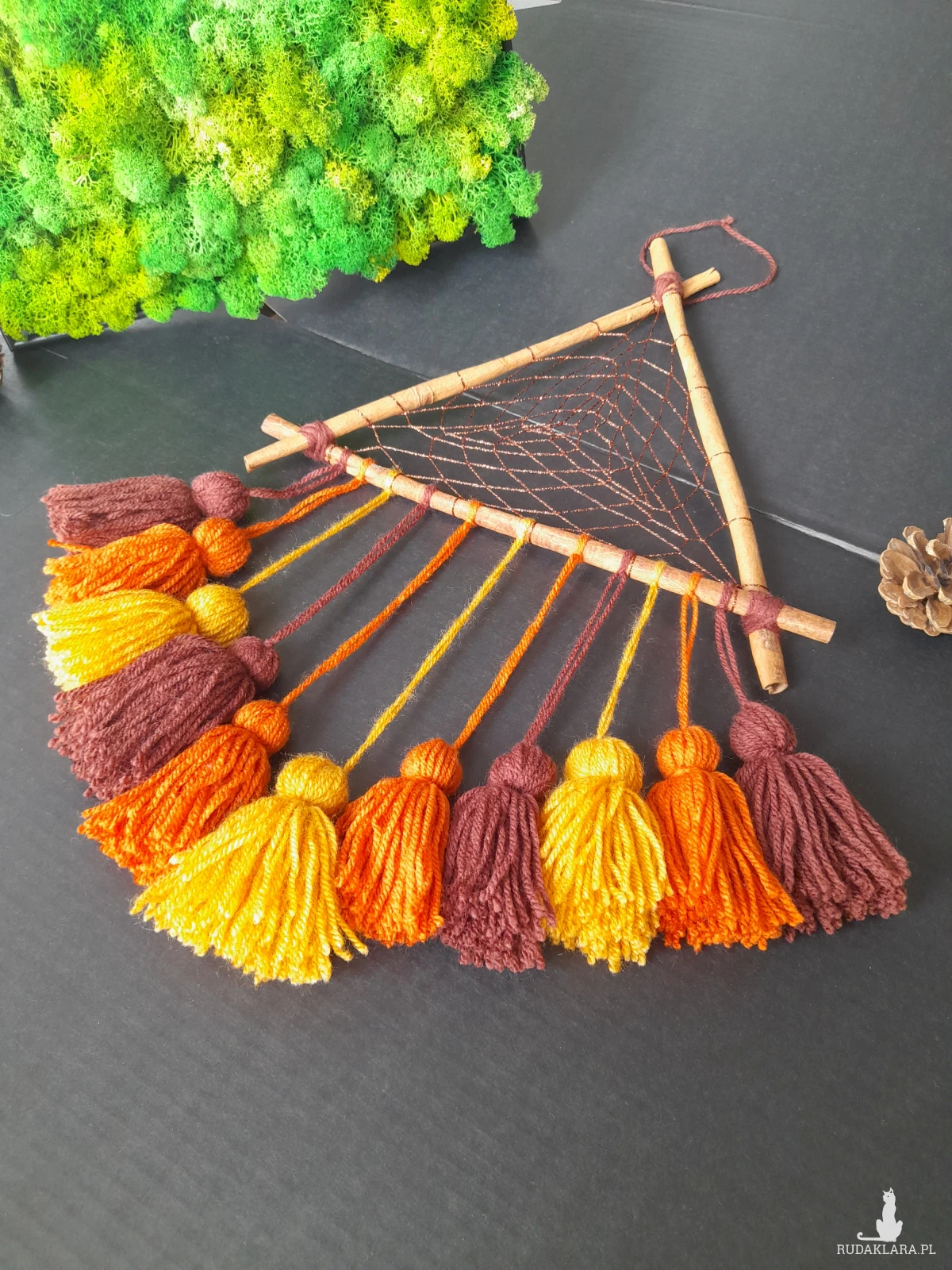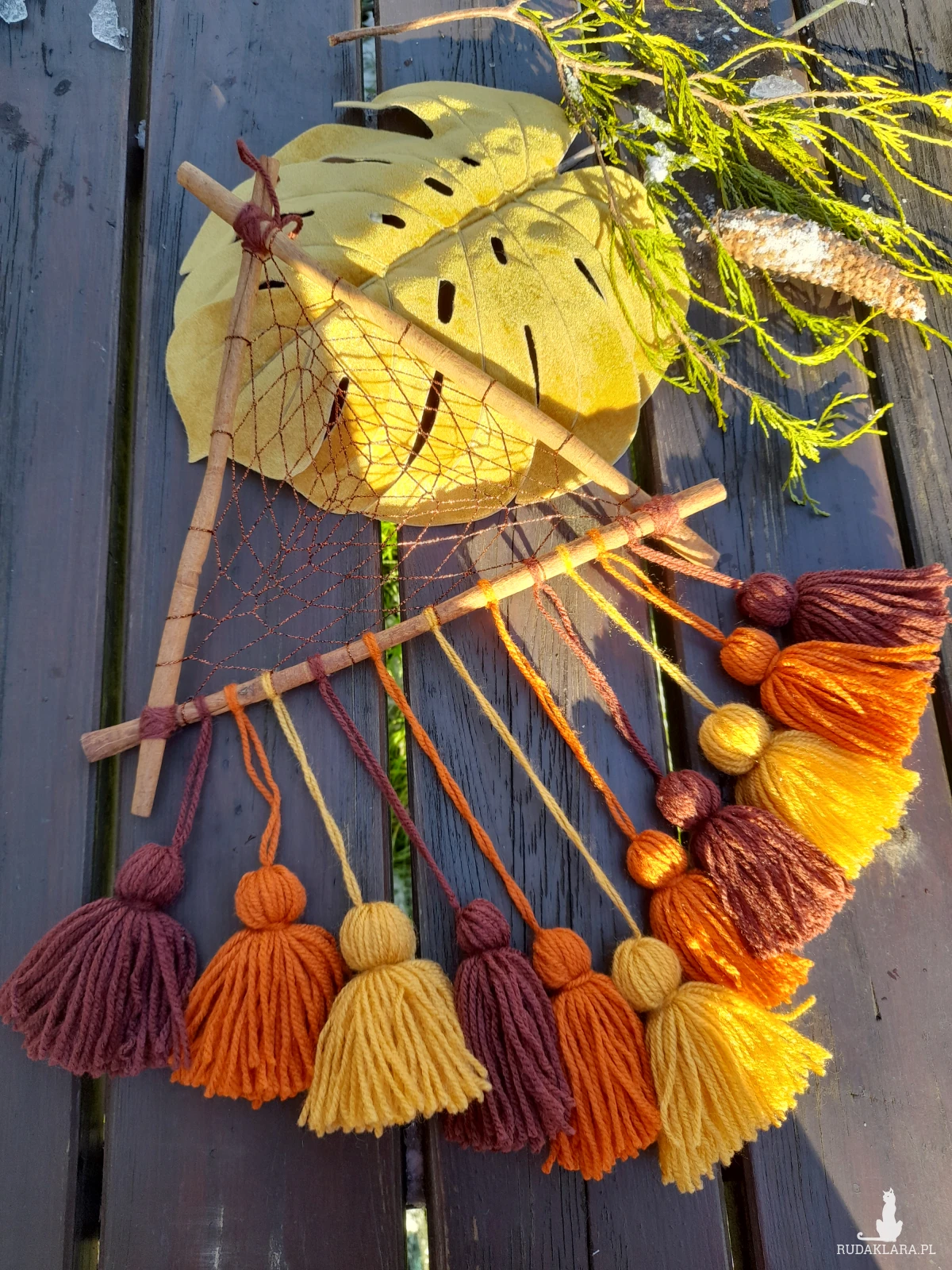 Cynamonowa rama dodaje subtelnego aromatu, a frędzle w odcieniach jesieni wprowadzają do przestrzeni przytulność, kolor i fakturę. Zawieś go na drzwiach, nad łóżkiem, w salonie lub kąciku relaksu, by stworzyć atmosferę spokoju i ciepła ✨