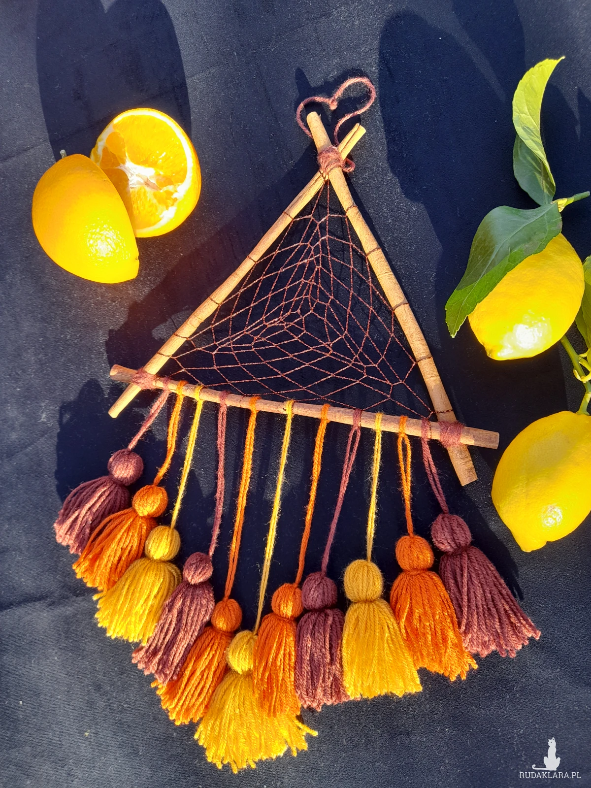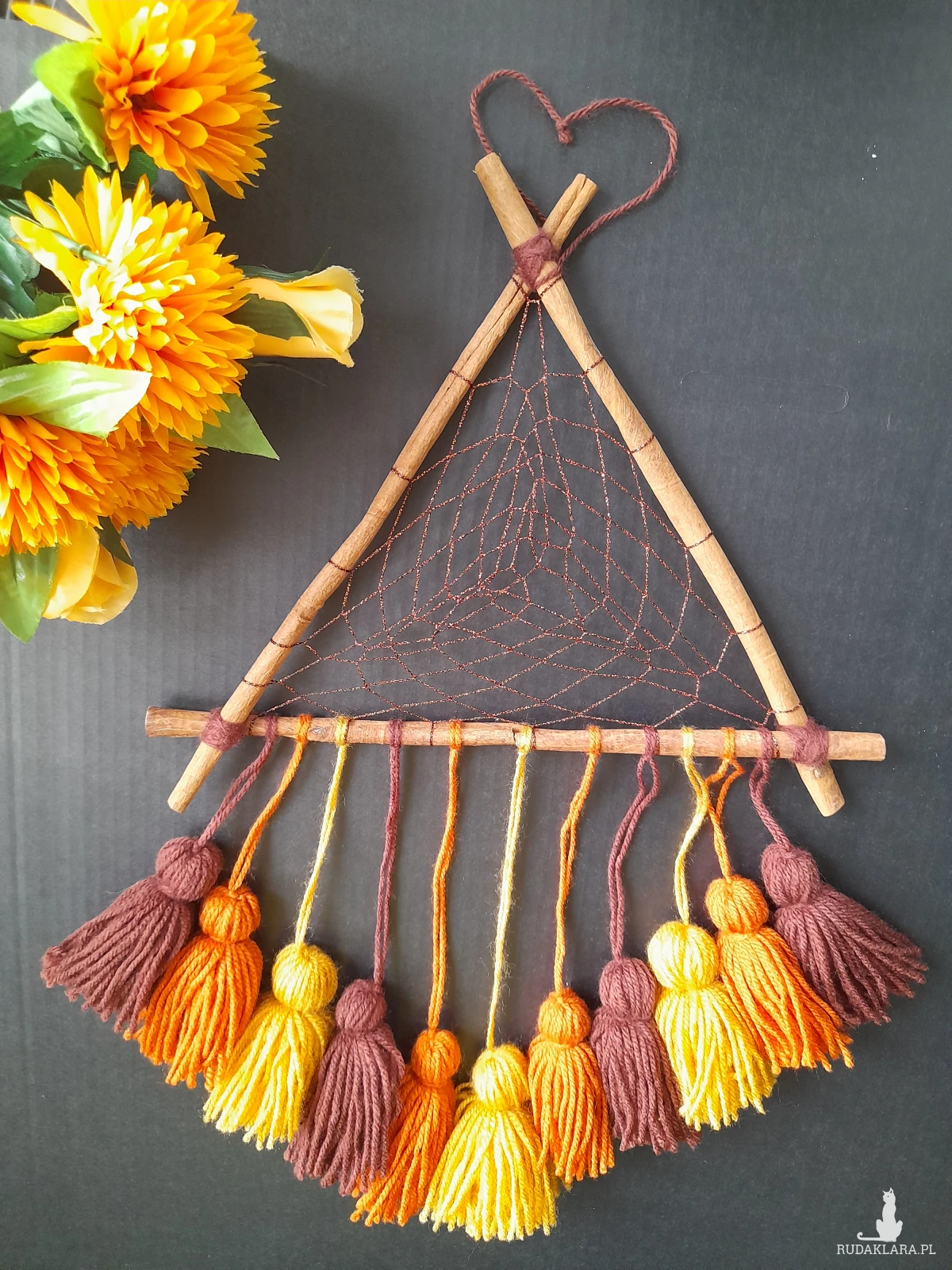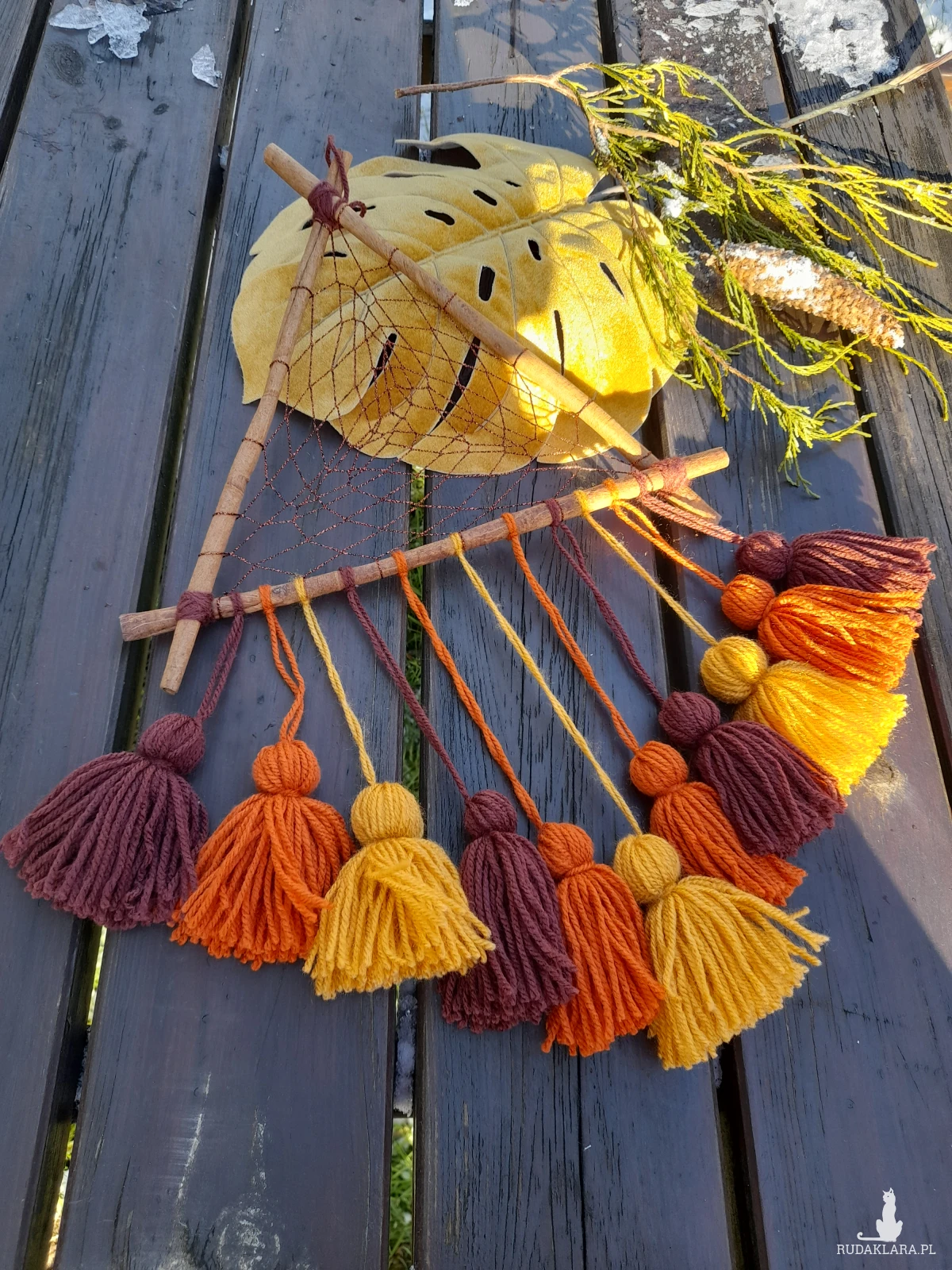 Cynamonowa rama dodaje subtelnego aromatu, a frędzle w odcieniach jesieni wprowadzają do przestrzeni przytulność, kolor i fakturę. Zawieś go na drzwiach, nad łóżkiem, w salonie lub kąciku relaksu, by stworzyć atmosferę spokoju i ciepła ✨