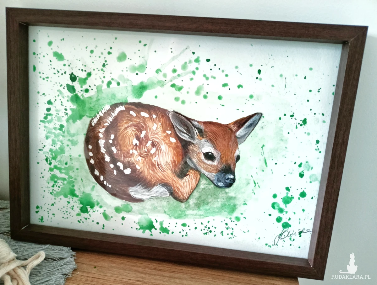 #ObrazAkwarela #Sarenka #DekoracjaDoPokoju #ObrazDoDziecięcegoPokoju #LeśneZwierzęta #ObrazZRęki #NaturalnaDekoracja #PolskieRękodzieło #ObrazZRękodzieła #AkwarelaDlaDzieci #ObrazZRamką #PrezentNaChrzest #BabyShowerPrezent #DekoracjaBoho #StylSkandynawski