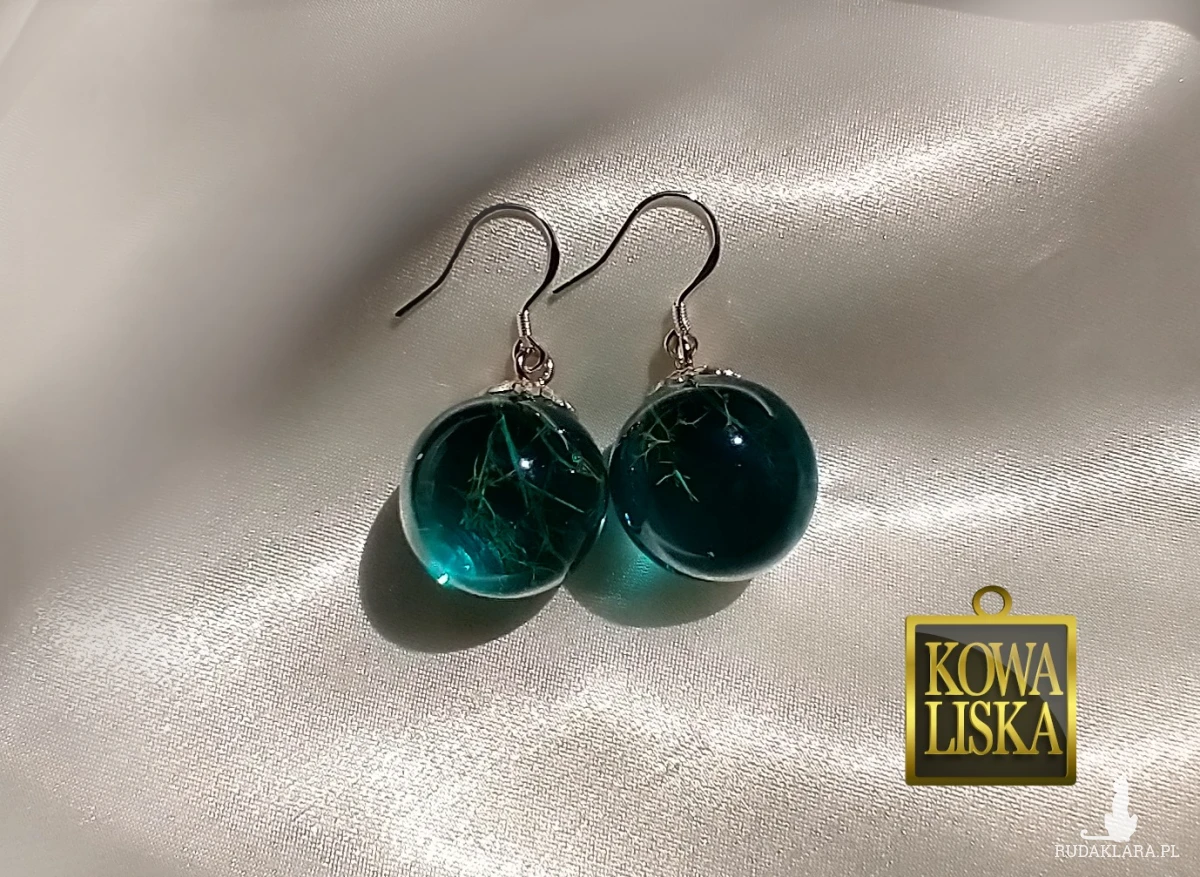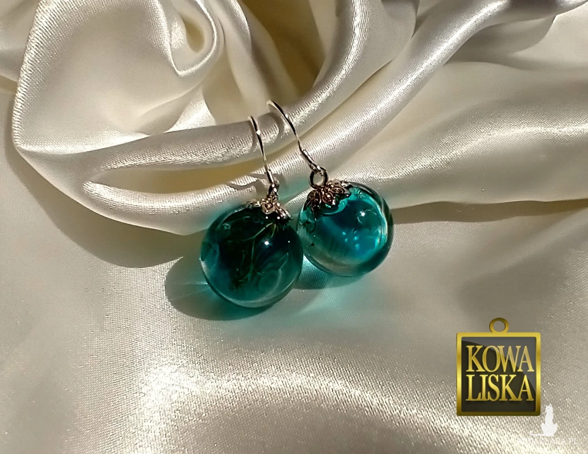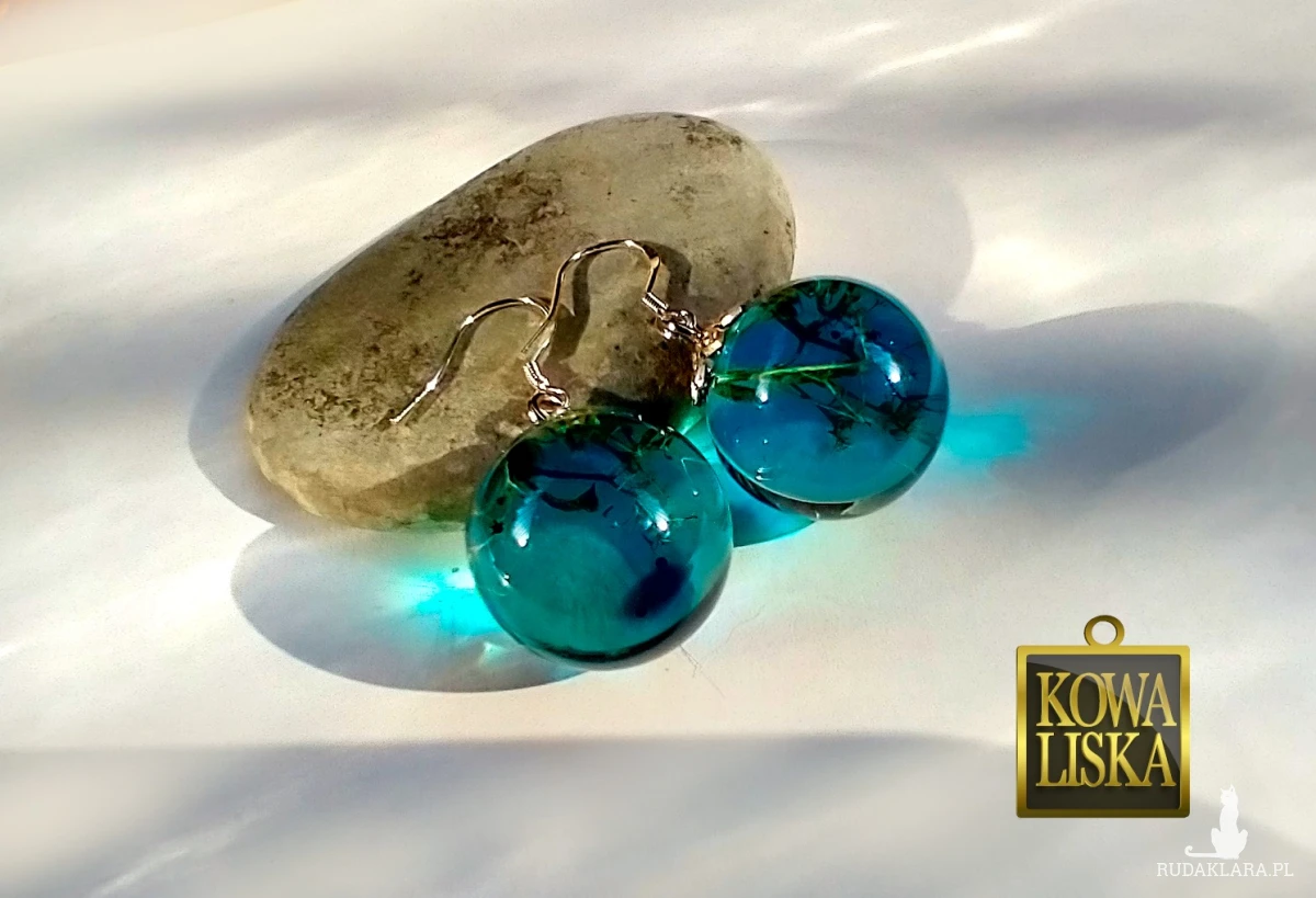 Turkusowe kuleczki i zatopione wewnątrz gałązki - prosta, delikatna, a równocześnie bardzo efektowna ozdoba uszu.
