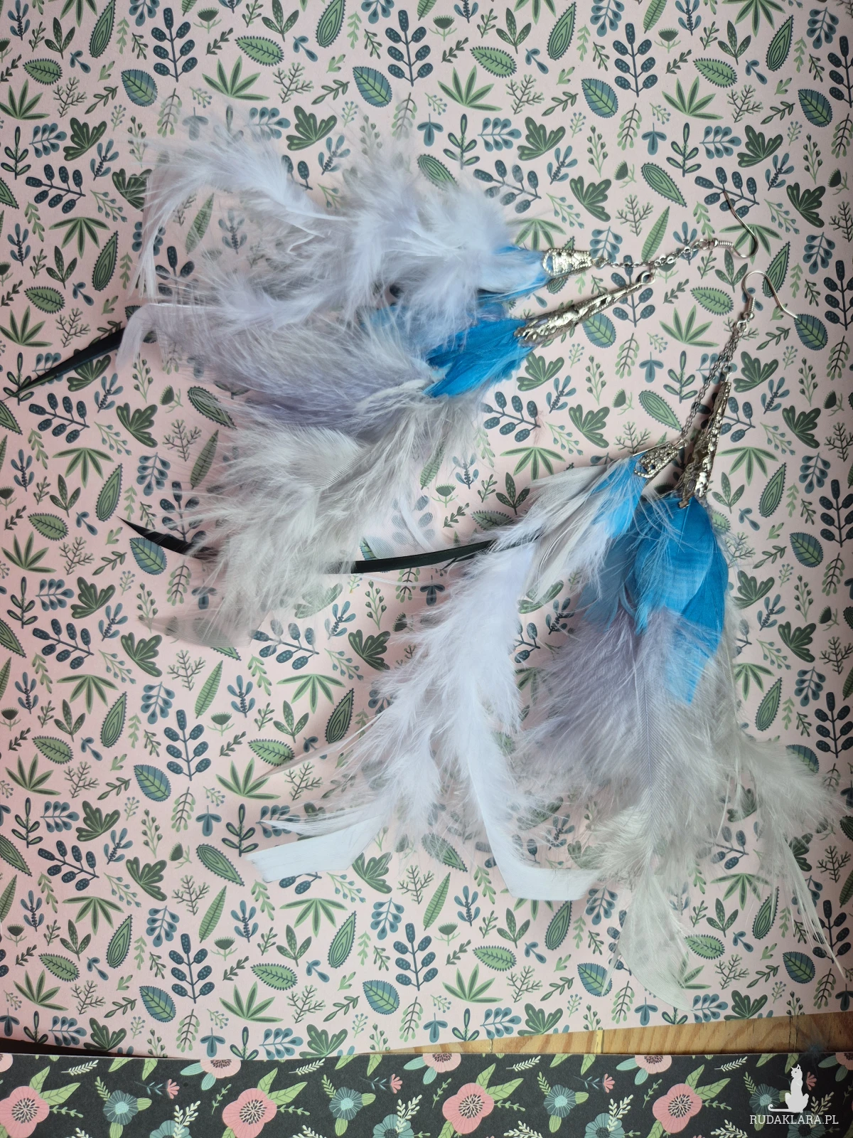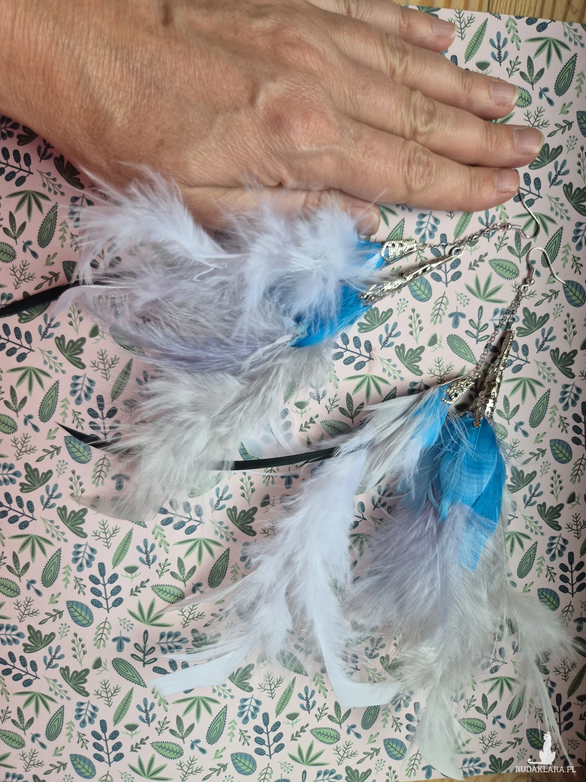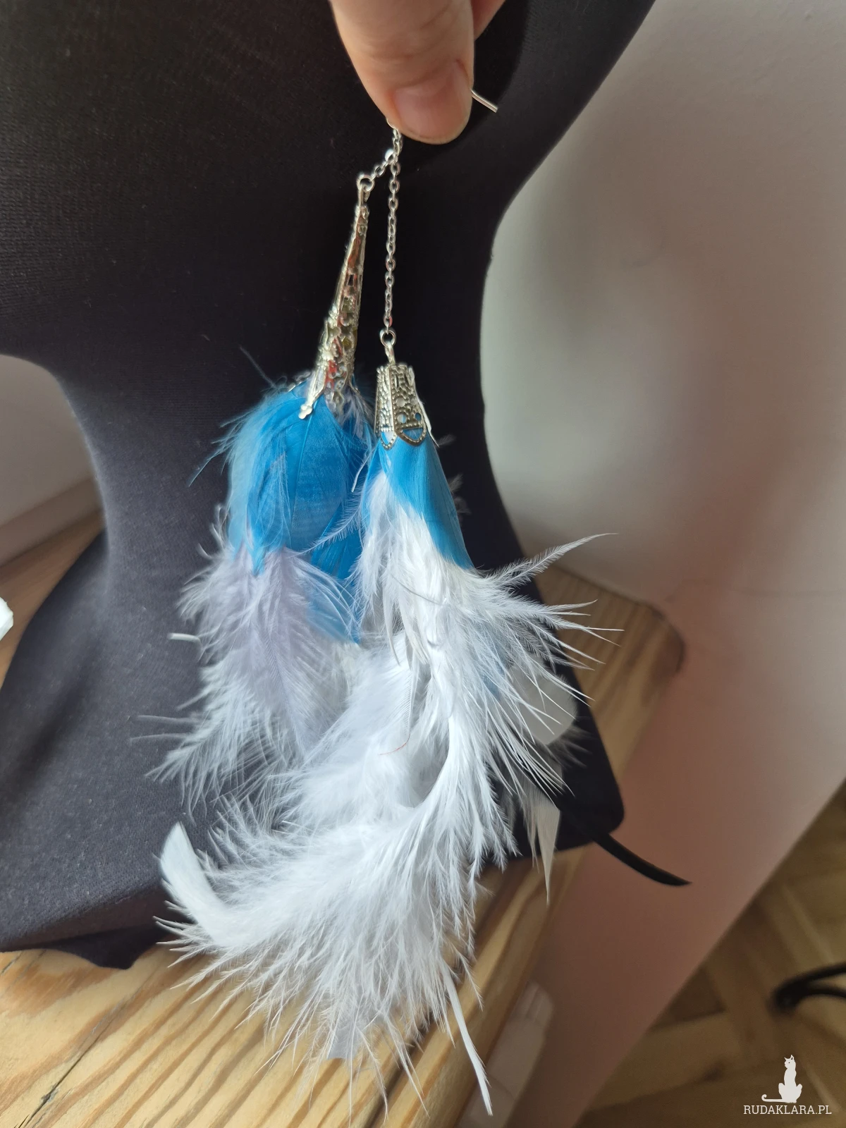 Kolczyki  długie pióra kolorowe bardzo stylowe polecam zwracają uwagę duże leciutkie cudne Box X1