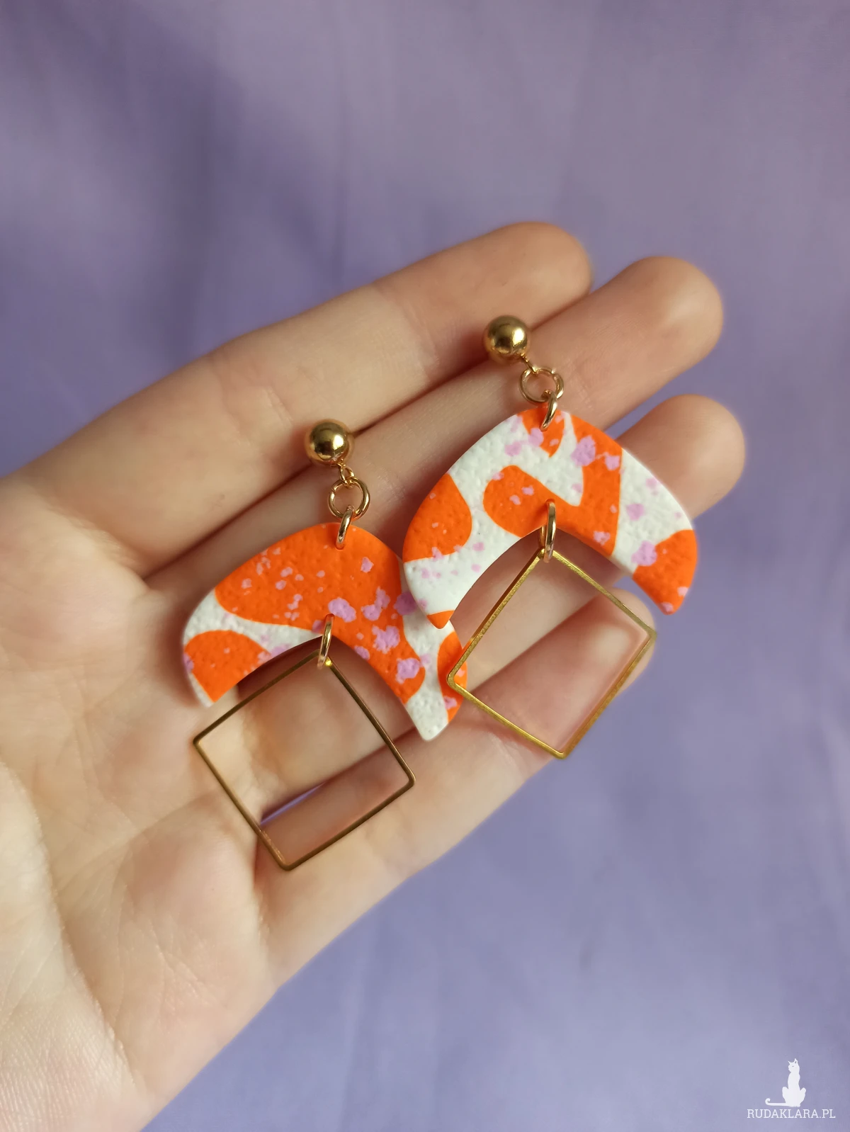 Kolczyki wykonane są z gliny polimerowej, która jest bardzo lekka. Sprawia to, że nie czuje się ich na uchu.