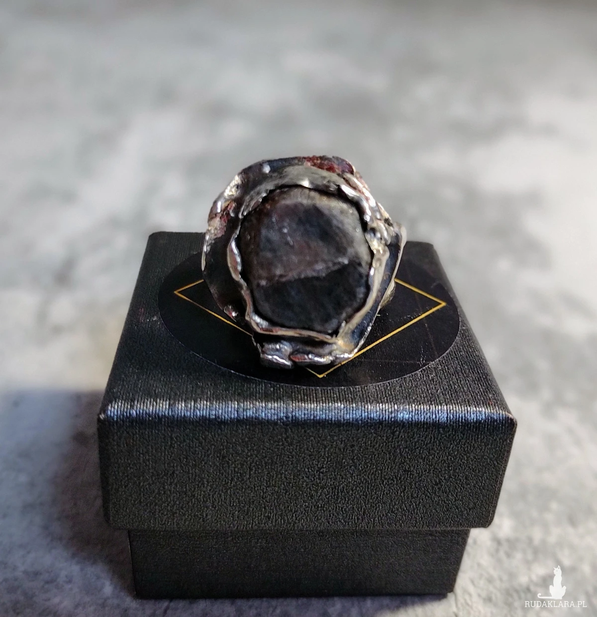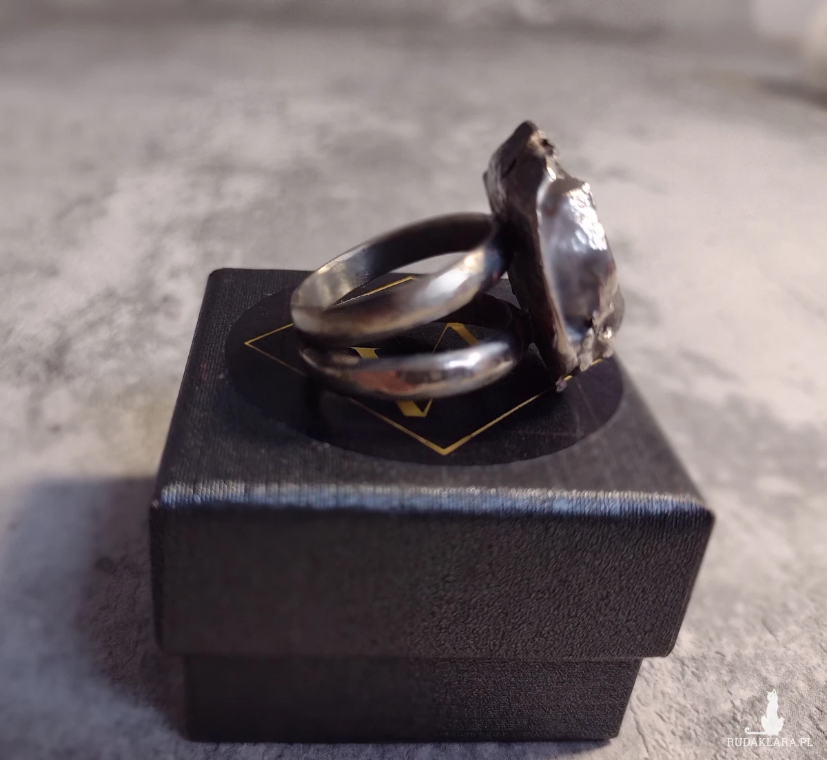 Pierścionek jest wykonany całkowicie ręcznie ze srebra próby 925.