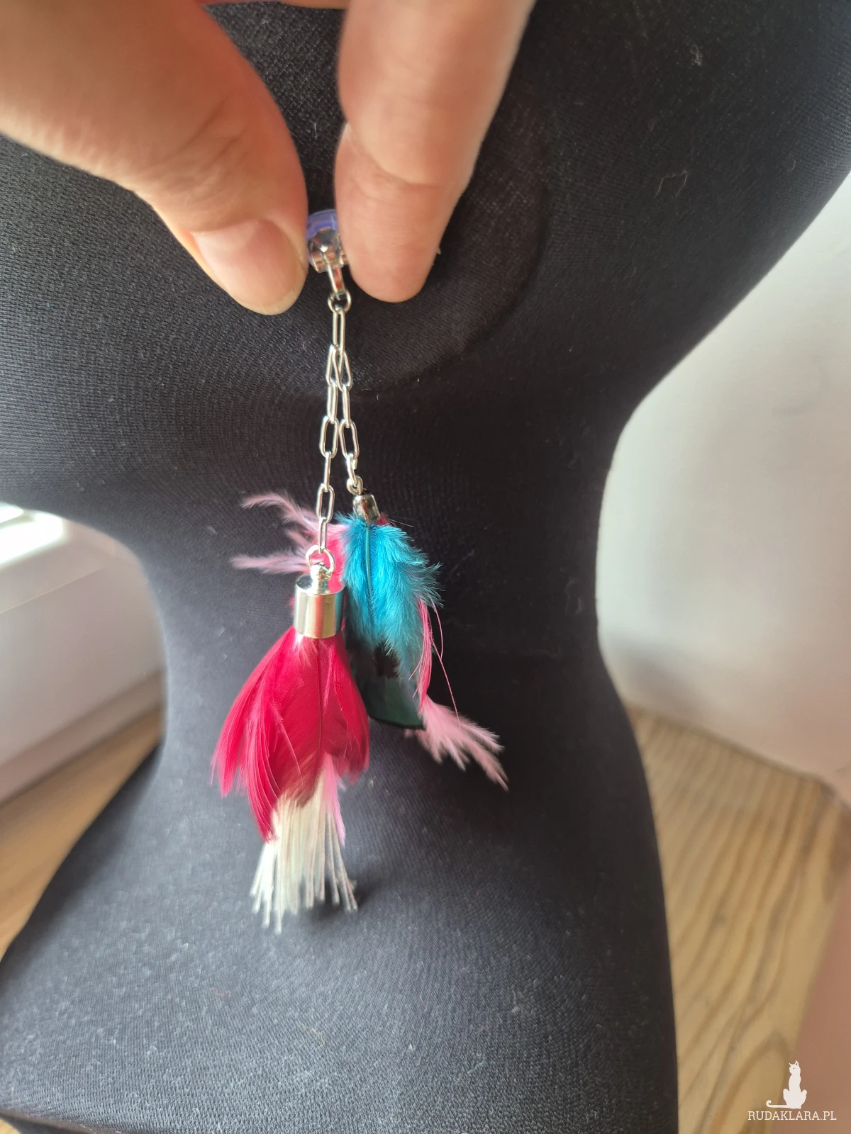 Klipsy długie pióra kolorowe bardzo stylowe polecam zwracają uwagę duże leciutkie cudne Box X1