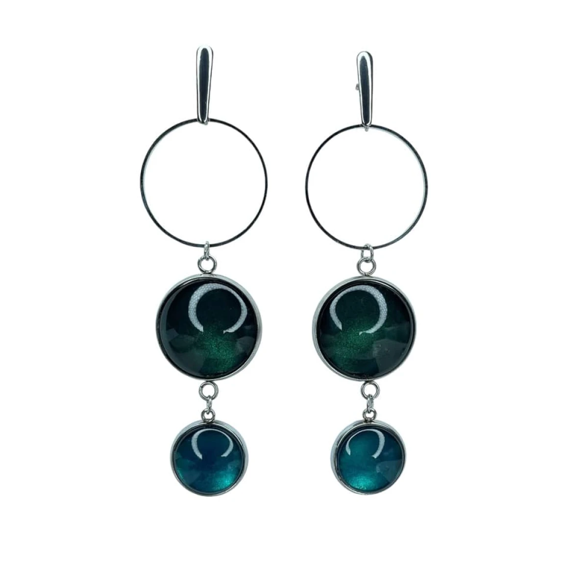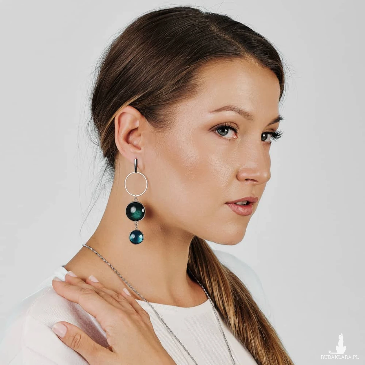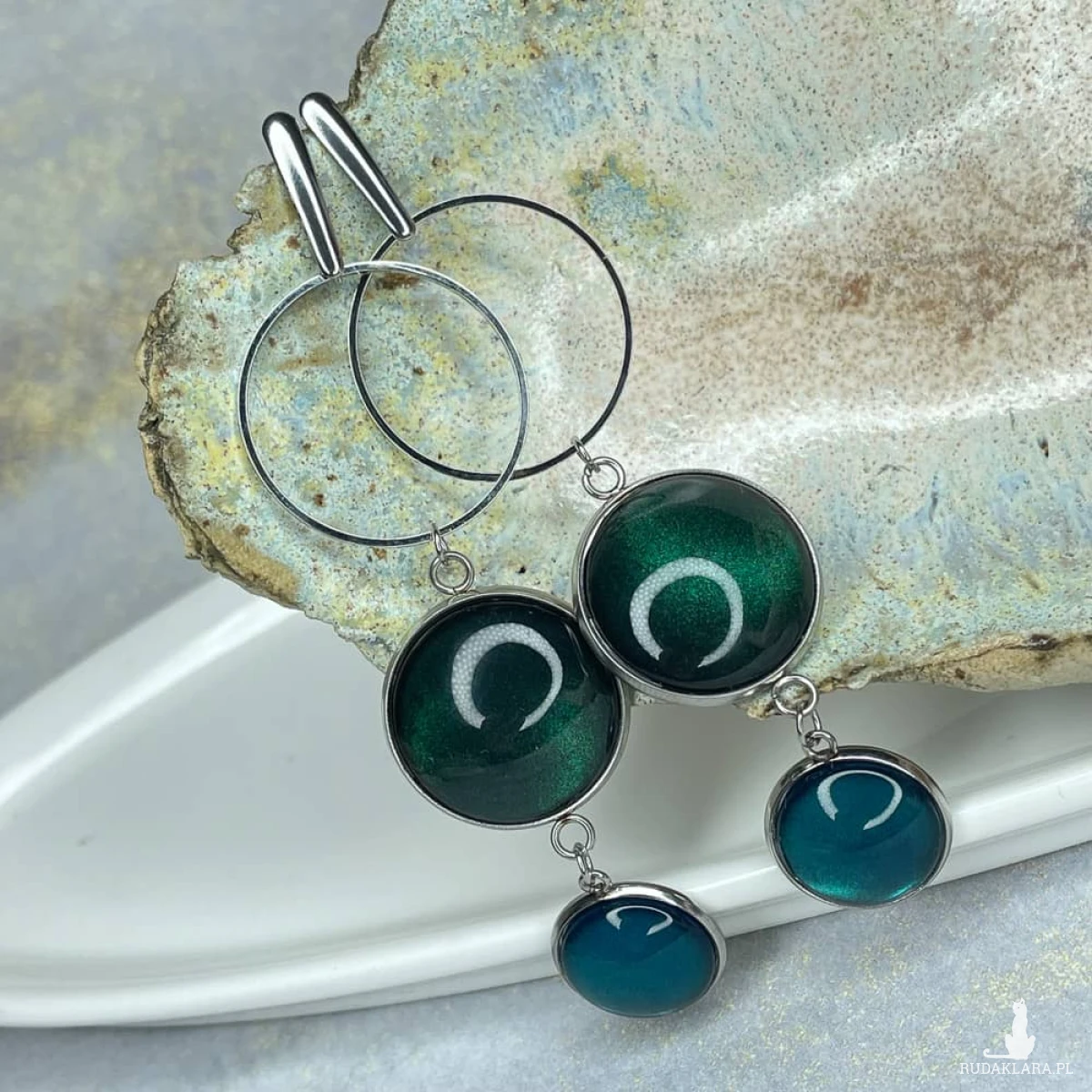 Te pełne blasku kolczyki są częścią kolekcji “W blasku perłowego księżyca”. Kolczyki wykonane są z ręcznie malowanych kaboszonów umieszczonych w bazach ze stali szlachetnej. Szklane elementy zachwycają subtelnym, opalizującym blaskiem, który jest niczym odbicie księżyca na tafli wody. Kolczyki mienią się w świetle, przyciągając wzrok i dodają elegancji każdej stylizacji. Ten dodatek jest idealny dla osób ceniących sobie wyrafinowaną i ponadczasową biżuterię. Materiał: stal szlachetna, malowane ręcznie szkło Wykończenie: połysk Długość kolczyków: 8,5 cm Średnica kaboszonu: 20; 16 mm Waga pary kolczyków: ok 13,6 g SKU: e4/m37, kolory: 68, 17 Jak dobierać komplety? Kolory na zdjęciach mogą się różnić ze względów technicznych. Aby dobrać identyczny odcień, zwróć uwagę na numer SKU produktu. Pierwsza część to numer modelu, a numery po “/” to kolor, np. /17 oznacza morski perłowy. Produkty z tym samym SKU po "/" mają identyczny kolor. Dzięki temu możesz łatwo tworzyć komplety, mając pewność, że biżuteria jest w tym samym odcieniu. Stwórz własny komplet! Jeśli nie ma biżuterii w wybranym modelu lub kolorze którego szukasz, możesz ją zamówić indywidualnie. Wyślij do nas maila z nazwą, numerem modelu i kolorem, a my w miarę możliwości wykonamy biżuterię na zamówienie. Termin realizacji ustalamy indywidualnie. Biżuteria zostanie elegancko zapakowana. W przypadku zakupu kompletu, biżuteria zostanie zapakowana razem. Kolory na zdjęciach mogą delikatnie różnić się od rzeczywistych.