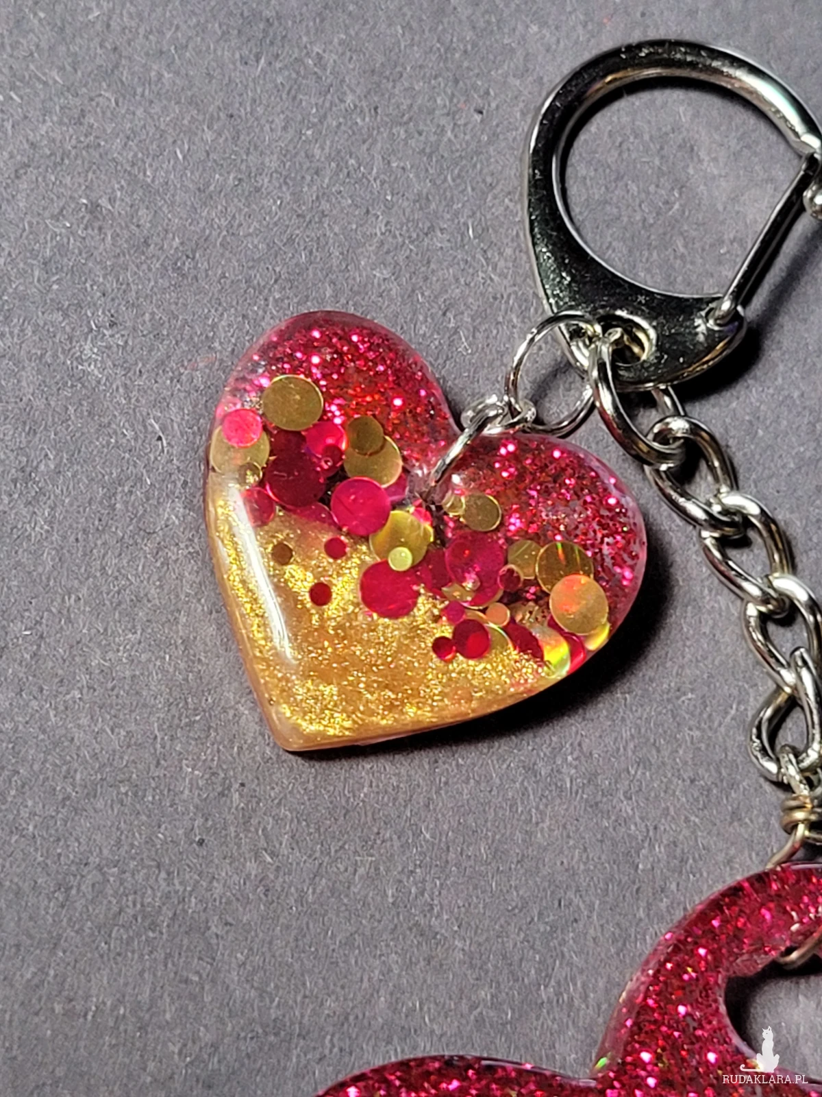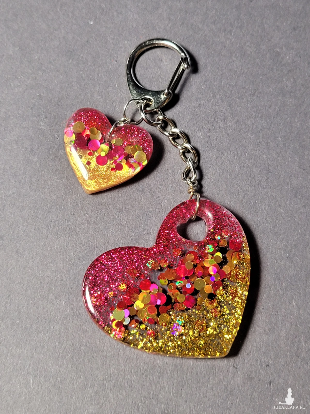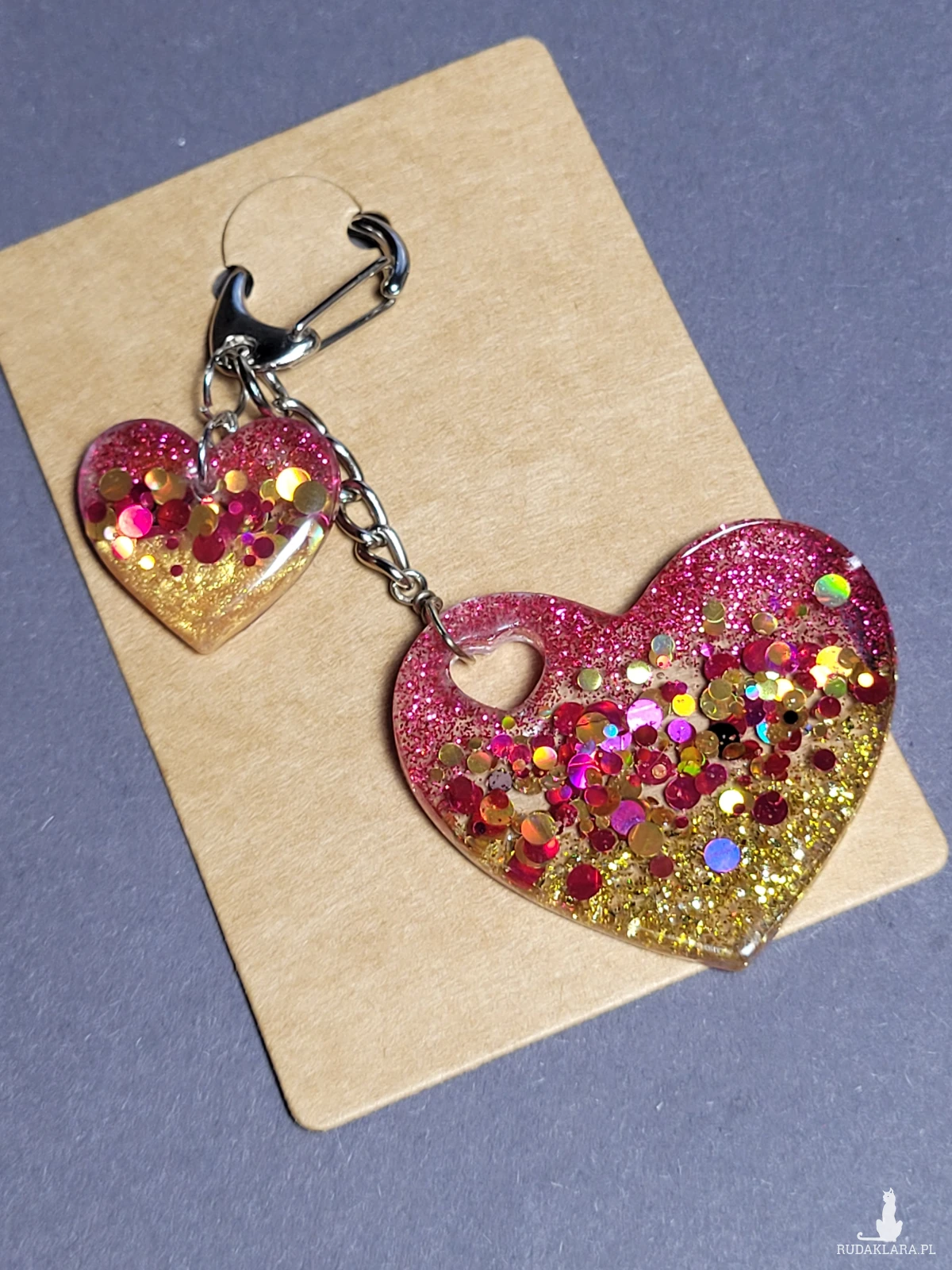 • Brelok "Serce Różowo-Złote" z żywicy to uroczy dodatek do kluczy lub torebki.