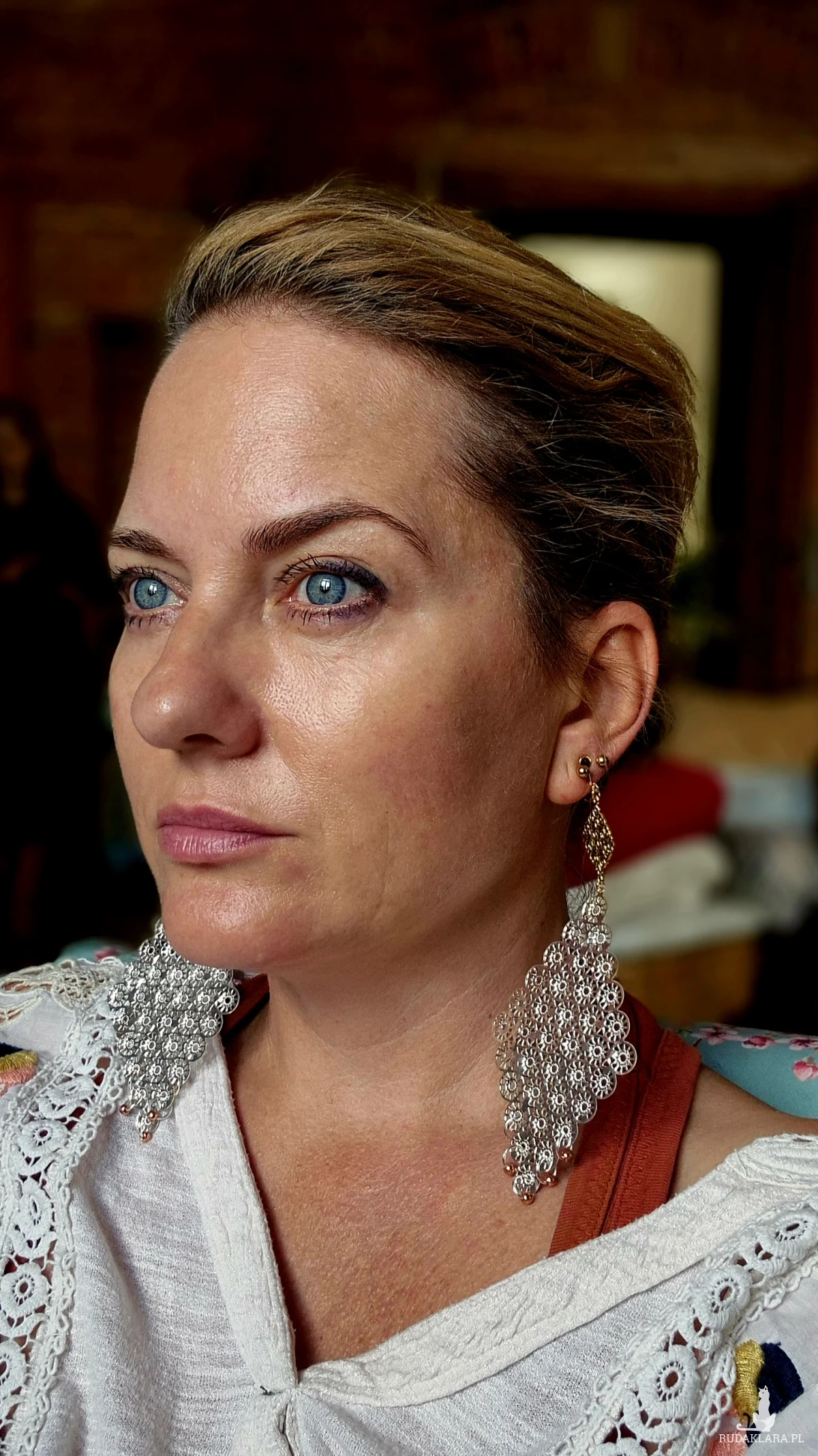 Klipsy długie długie lekkie filigrane w kolorze srebrnym i złotym w indyjskim orientalnym stylu polecam box x1