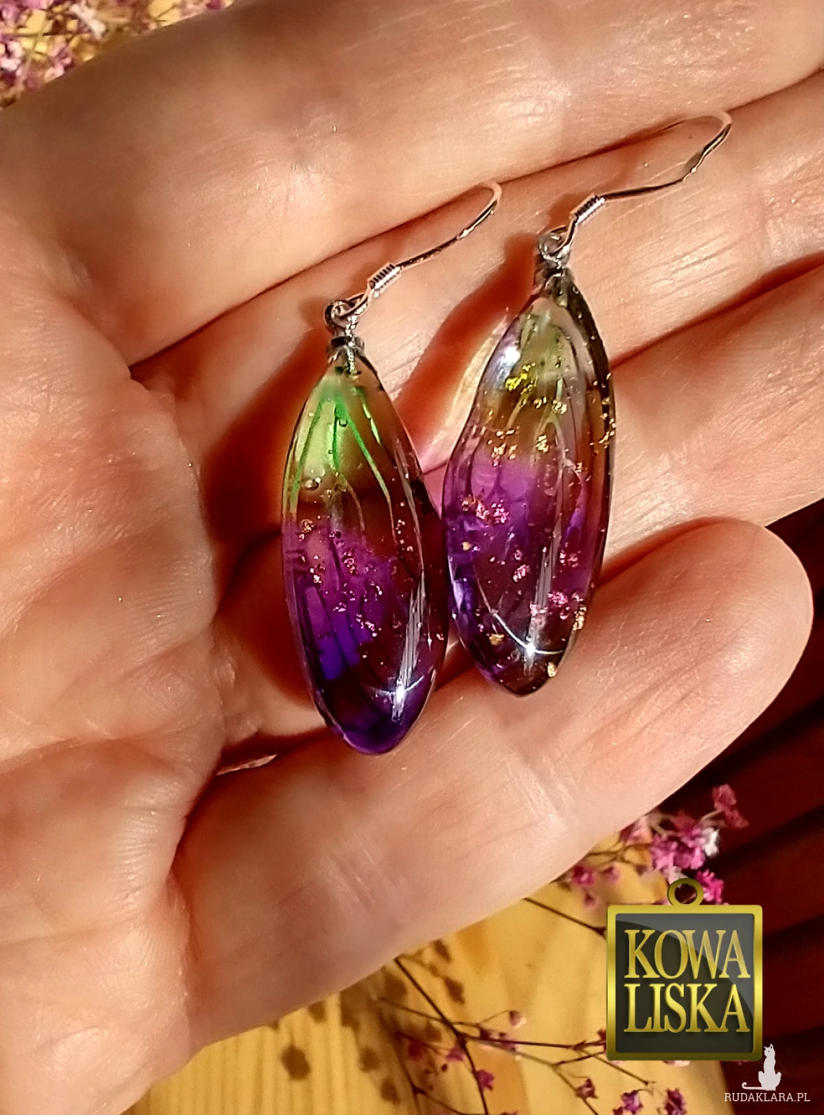 Śliczne, nieduże kolczyki imitujące owadzie skrzydełka.