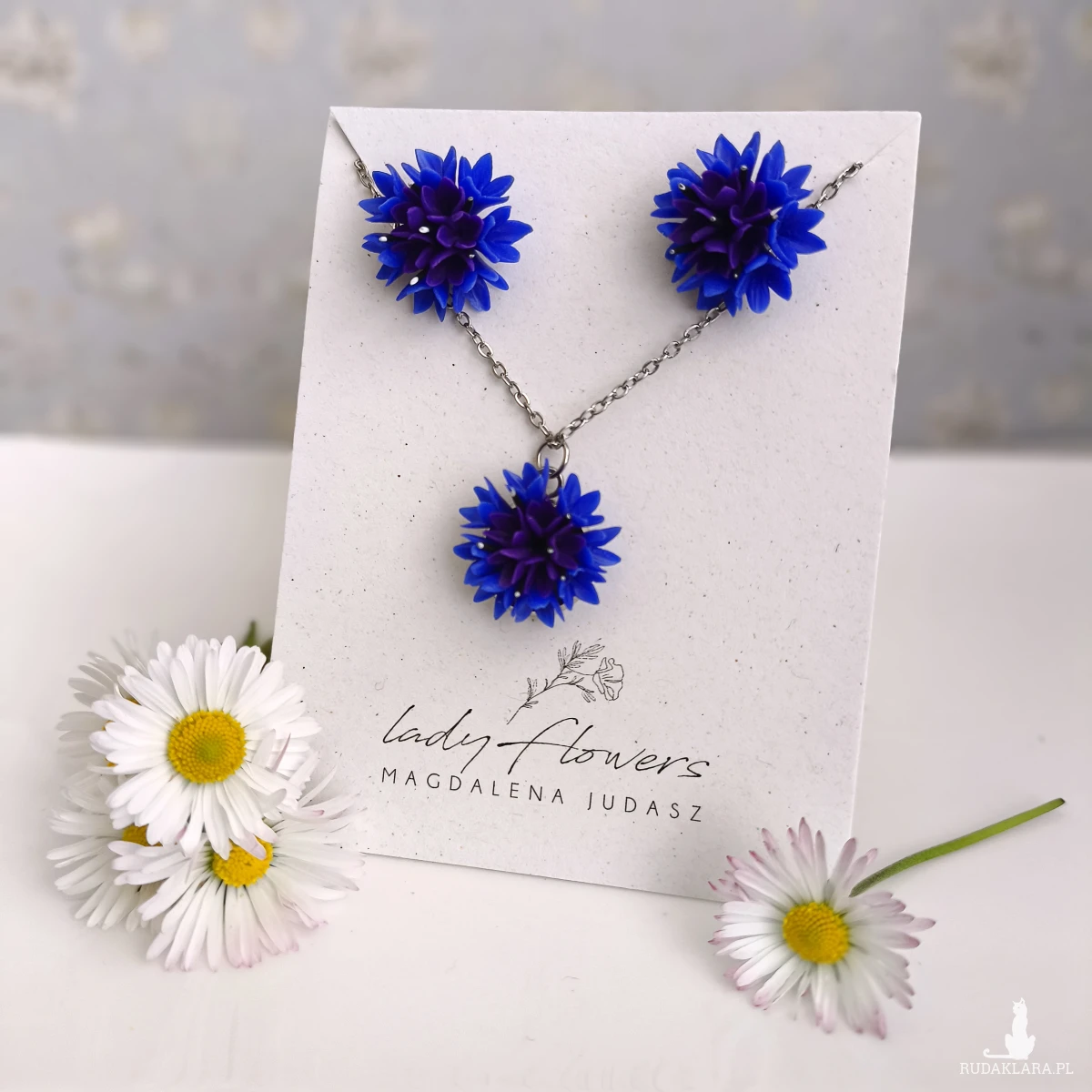 Komplet biżuterii kolczyki+naszyjnik z kwiatami wykonany ręcznie z profesjonalnej masy termoutwardzalnej marki Fimo.