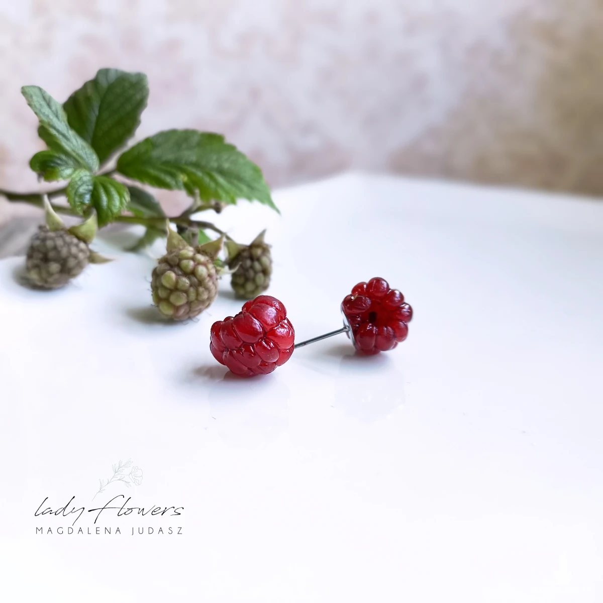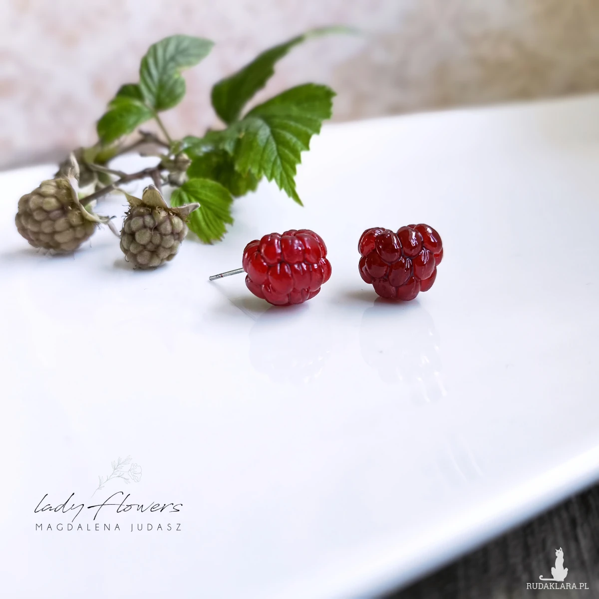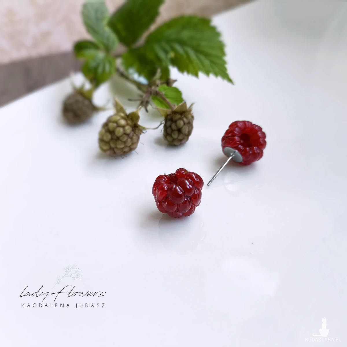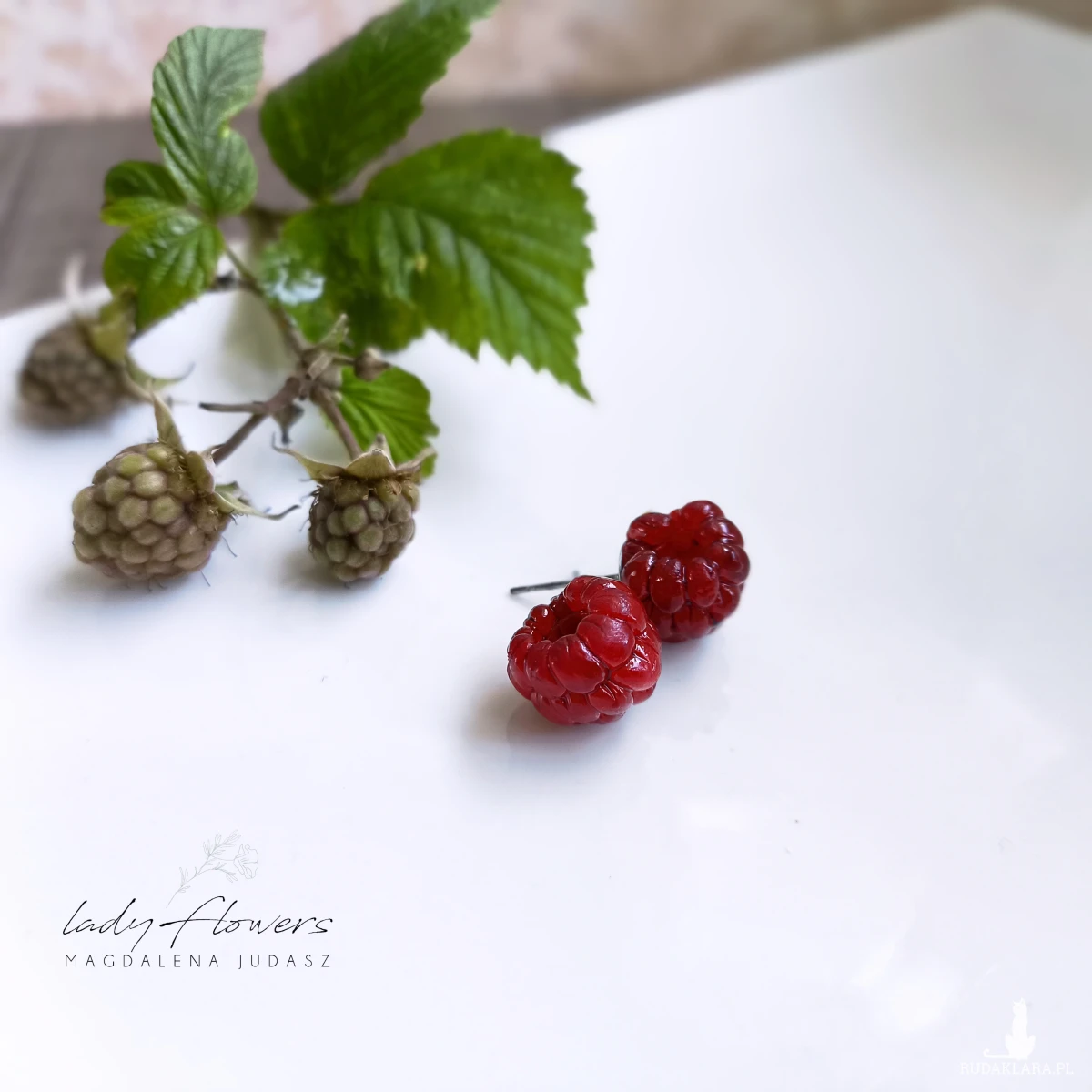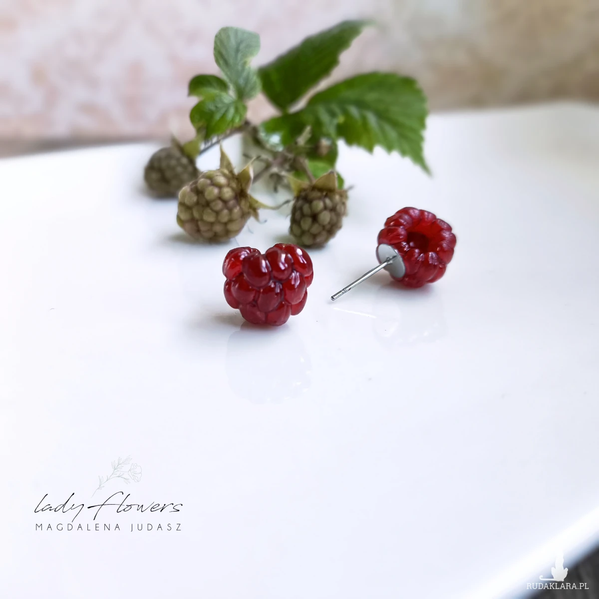 Urocze, realistyczne kolczyki z malinkami wykonane ręcznie z profesjonalnej masy termoutwardzalnej.