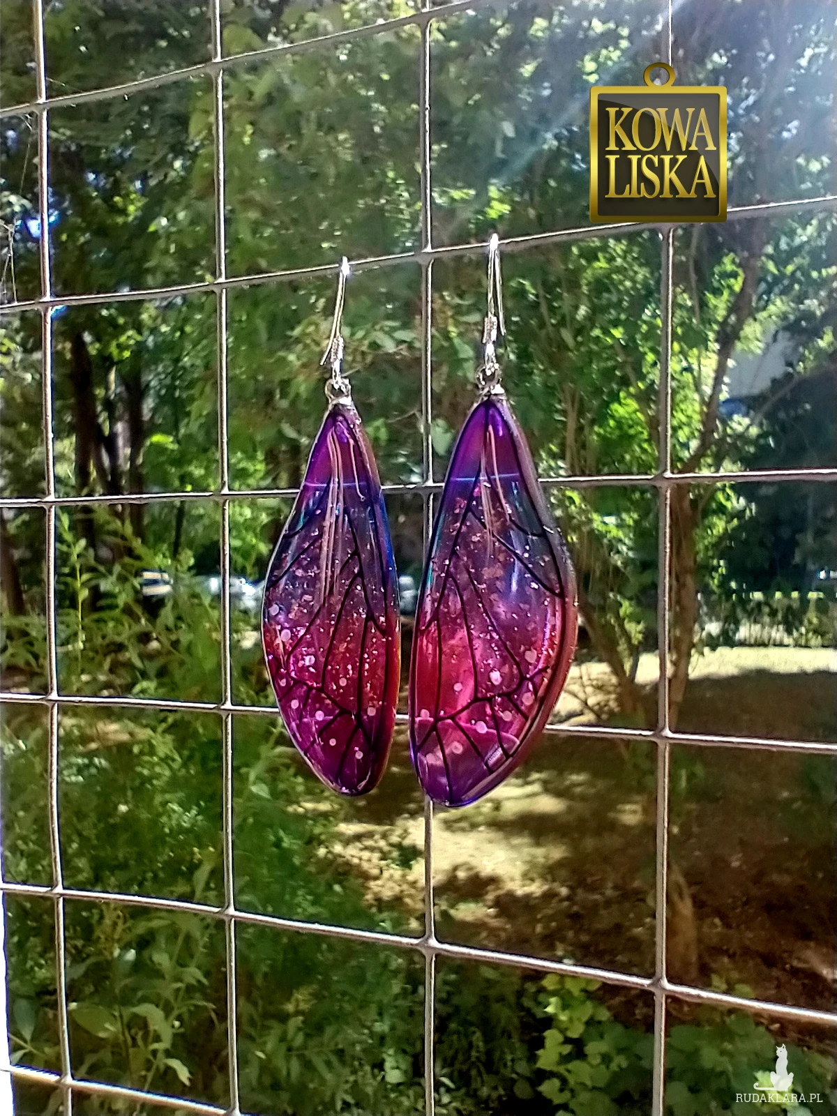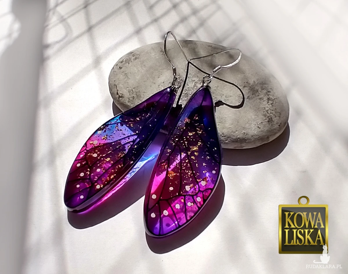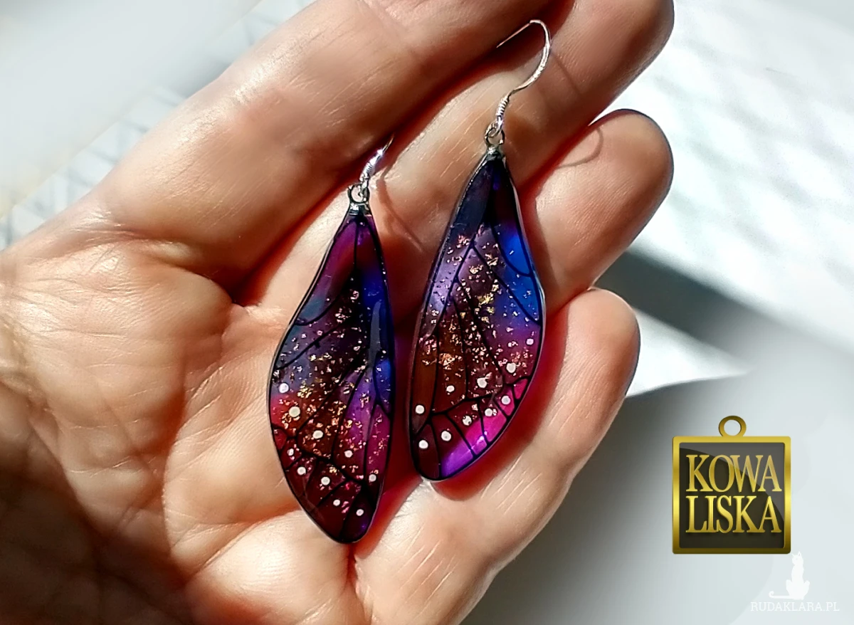 Lśniące fioletowo-złotym blaskiem skrzydła motyla przepięknie podkreślą Twoją urodę, zarówno w ciepłe, słoneczne dni, jak i podczas wieczornego wyjścia. Złote drobinki mienią się w słońcu... Skuś się...
