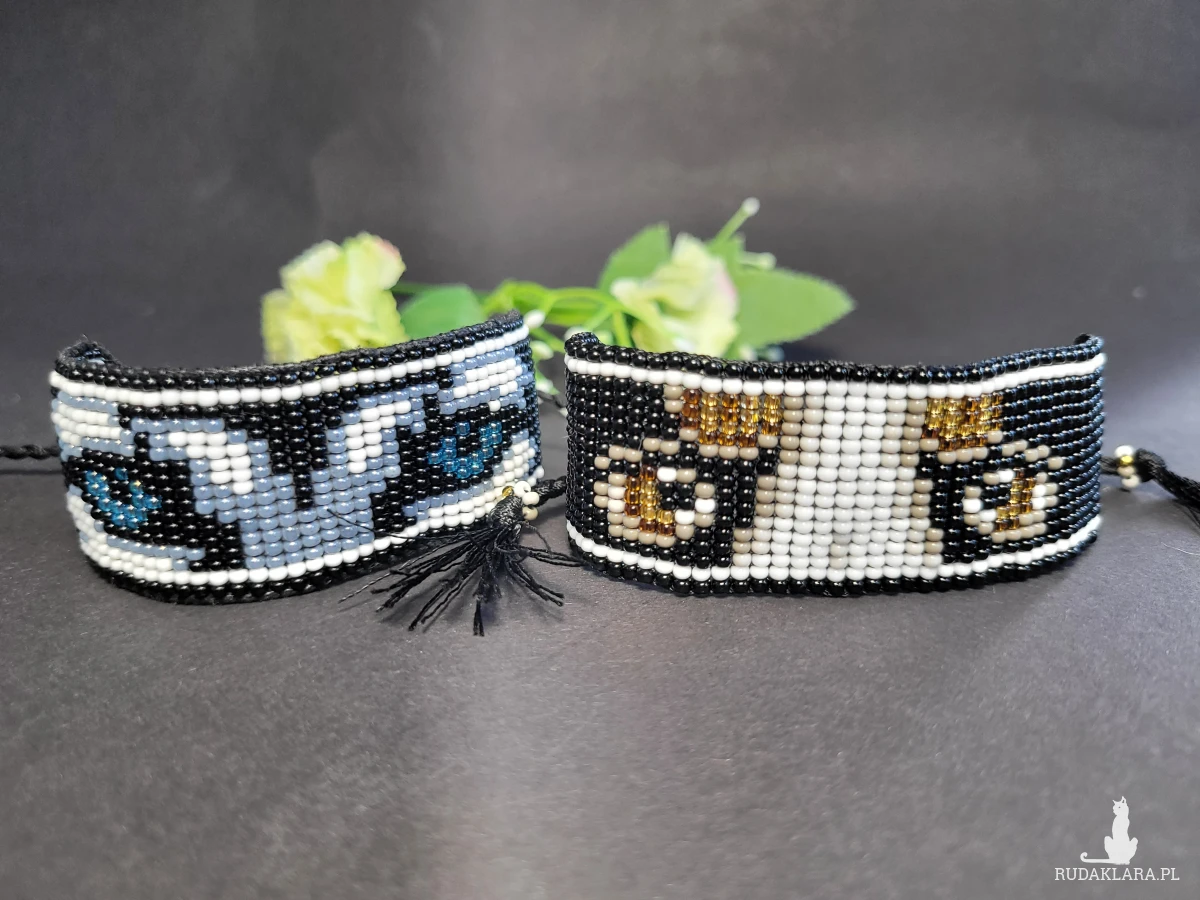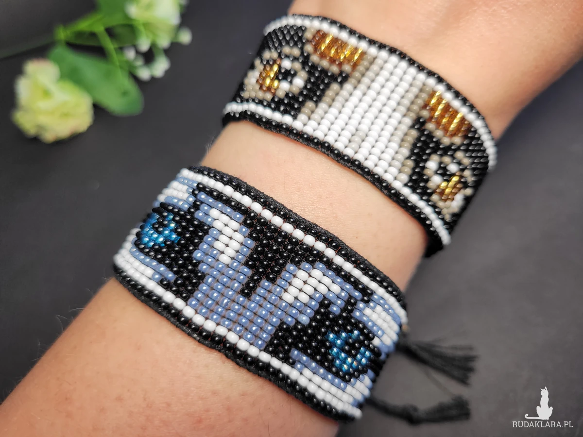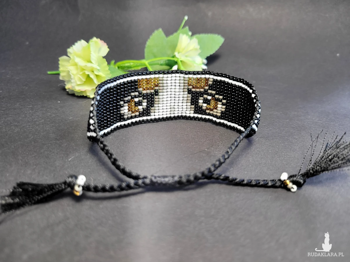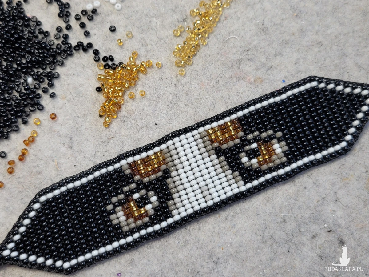 Wlasnoręcznie utkana na krosnie z koralików czeskich Preciosa bransoletka uniseks z oczami Berneńskigo psa pasterskiego.