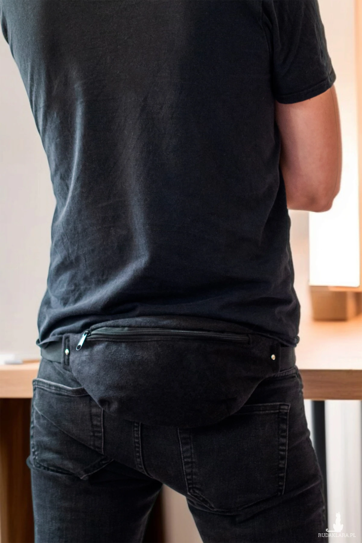 Duża nerka saszetka biodrowa wykonana z czarnej mikrofazy.