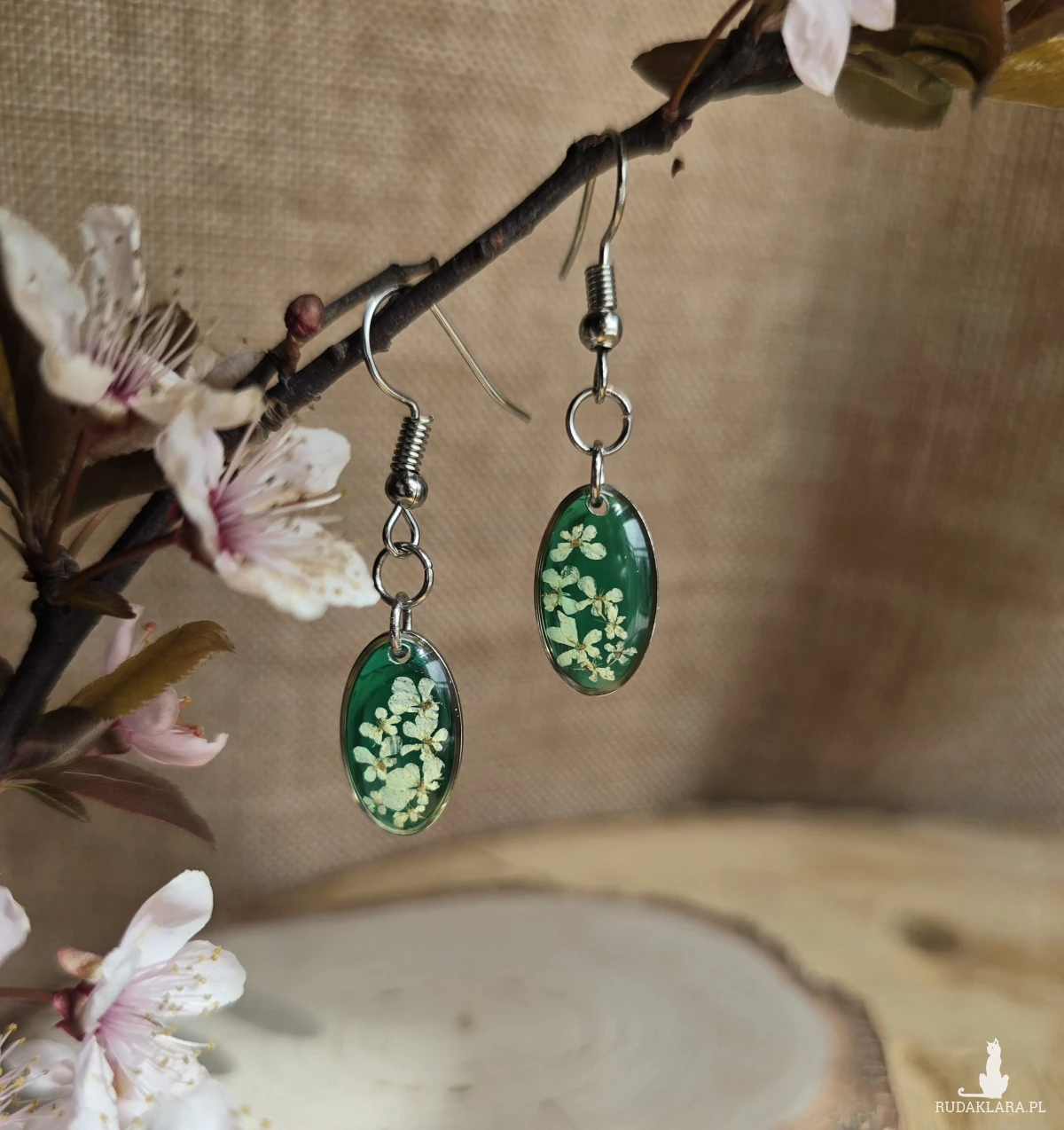 Roślinna biżuteria z żywicy epoksydowej.