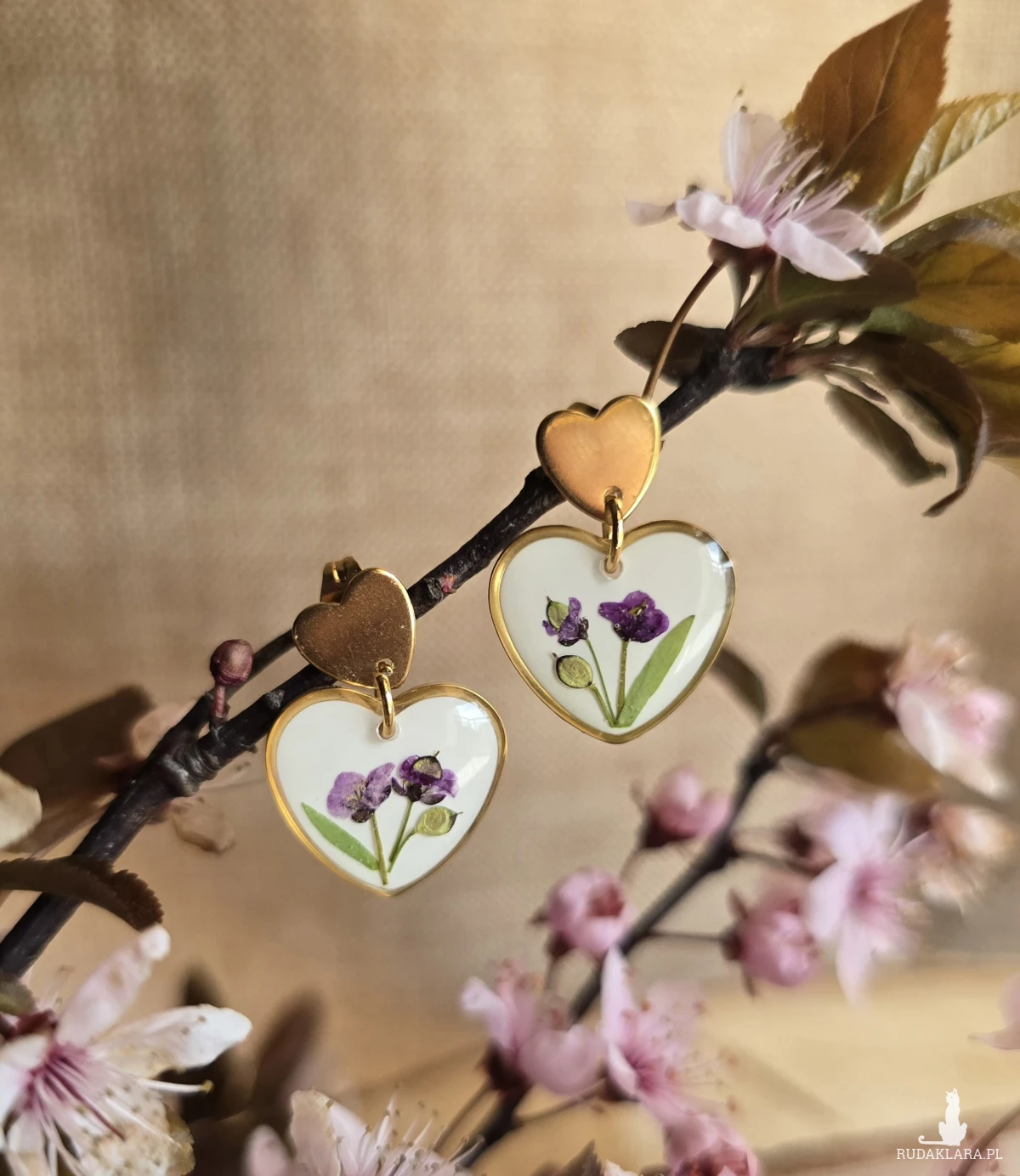 Oferuję Państwu unikalną biżuterię. Kolczyki są wykonane z suszonych kwiatów i żywicy epoksydowej. Biżuteria jest wspaniałym i oryginalnym prezentem na lata.