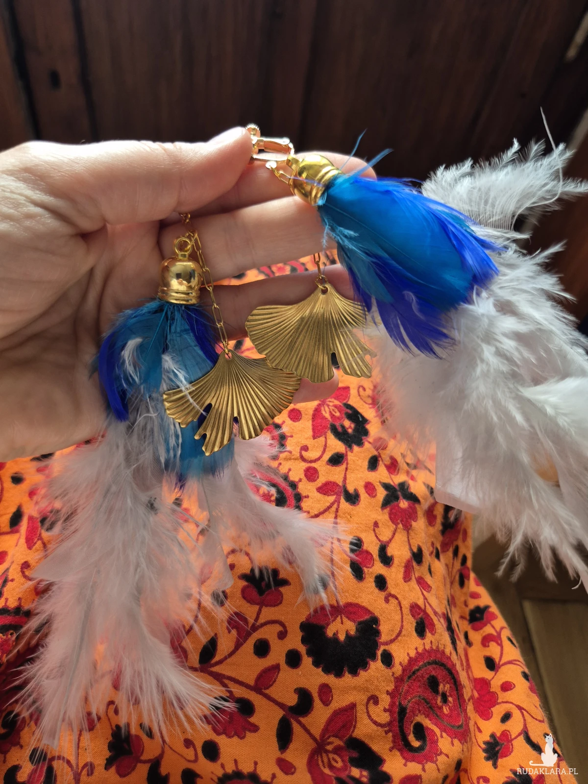 Klipsy długie pióra kolorowe bardzo stylowe polecam zwracają uwagę duże leciutkie cudne Box X1
