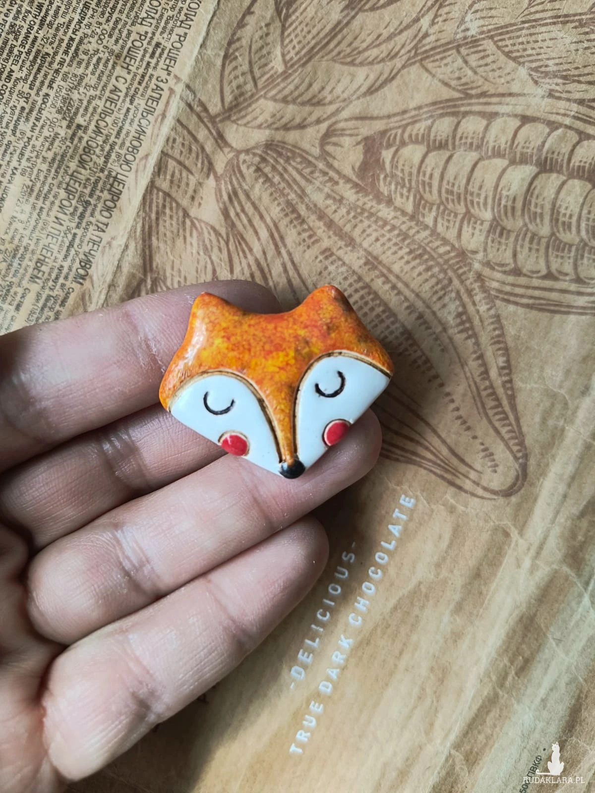 Broszka liska wykonana z gliny szamotowej, wypalona na biskwit, a następnie szkliwiona w temperaturze ok 1260 stopni C. O wymiarach ok; 4 cm x 3,5 cm. Serdecznie polecam wszystkim Paniom poszukującym nietuzinkowej biżuterii.