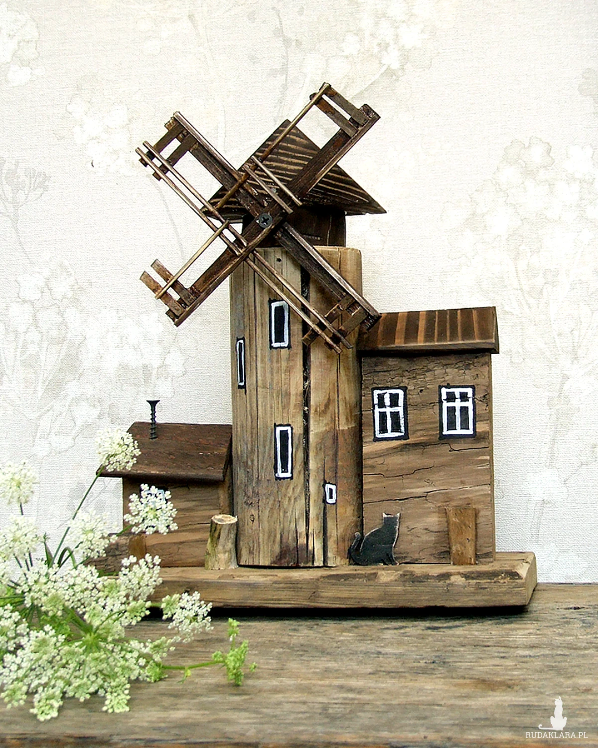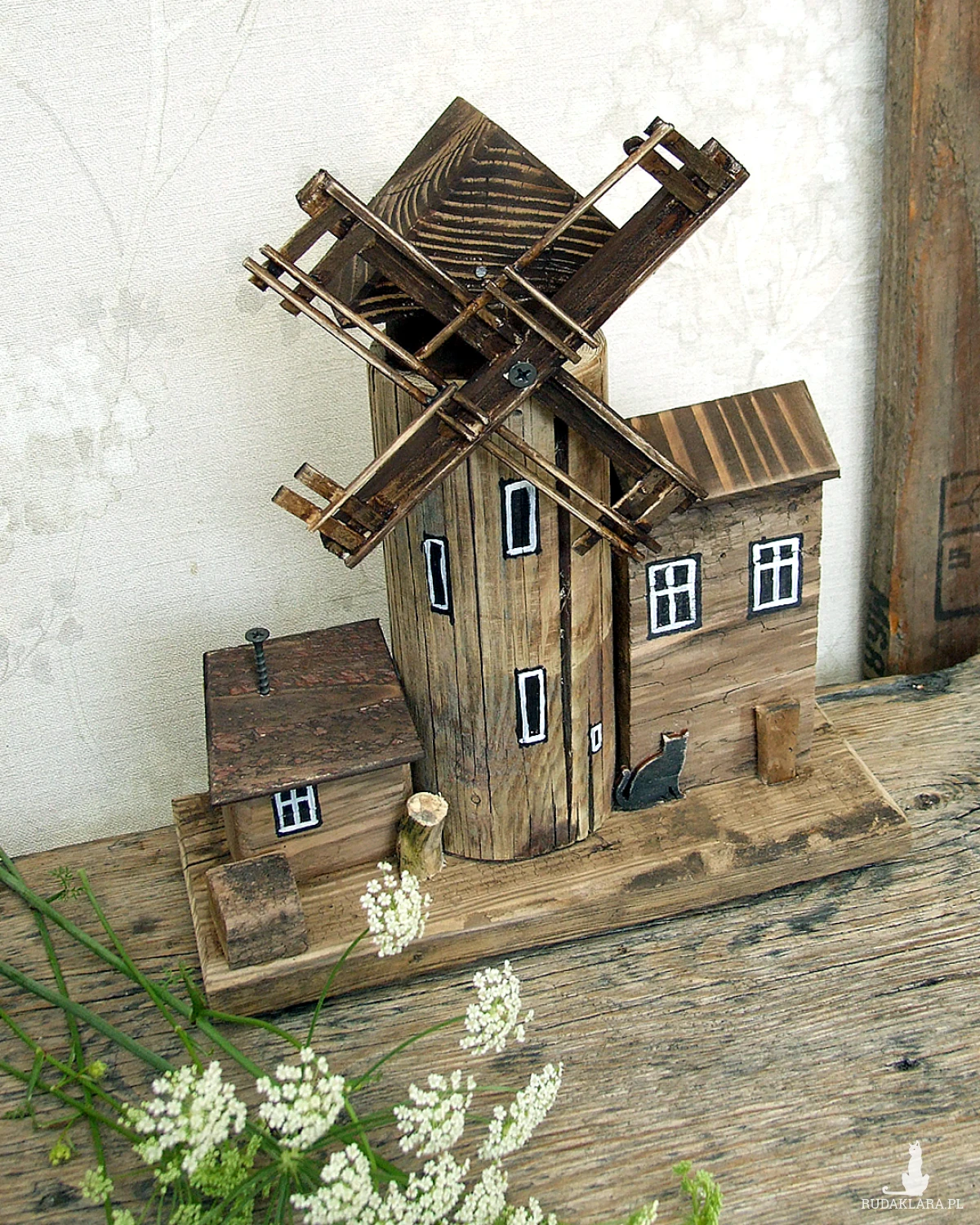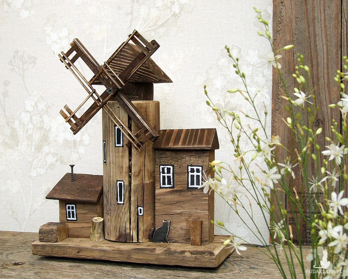 Młyn wiatrowy - dekoracja, ozdoba, ręcznie wykonana, w prostym sielskim klimacie. Domki z naszej pracowni, tworzą naturalny i przytulny klimat domu, i podkreślają bliskość z naturą.