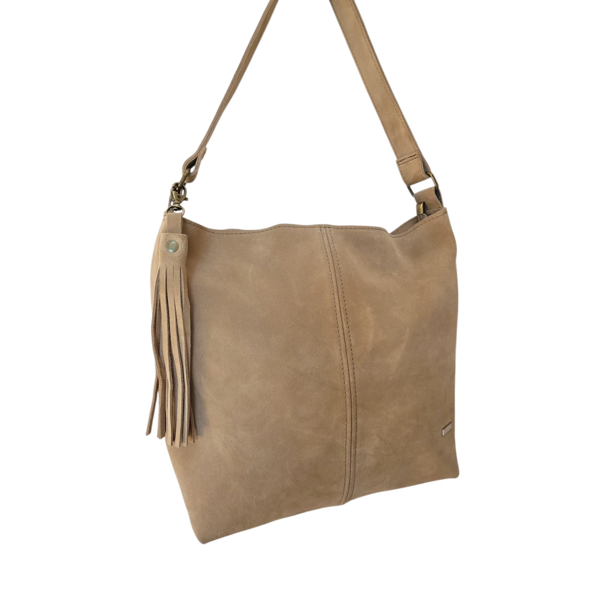 Wykonana z naturalnej włoskiej skóry zamszowej w oryginalnym kolorze piasku będzie idealnym uzupełnieniem letniego 'outfitu'. Brelok z chwostem oraz etui na karty GRATIS!!!