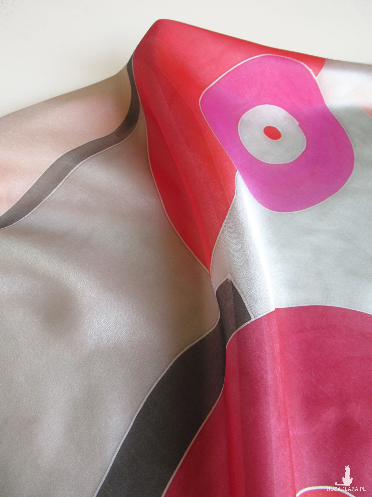 Duża Minimalistyczna chusta z naturalnego jedwabiu malowana ręcznie.