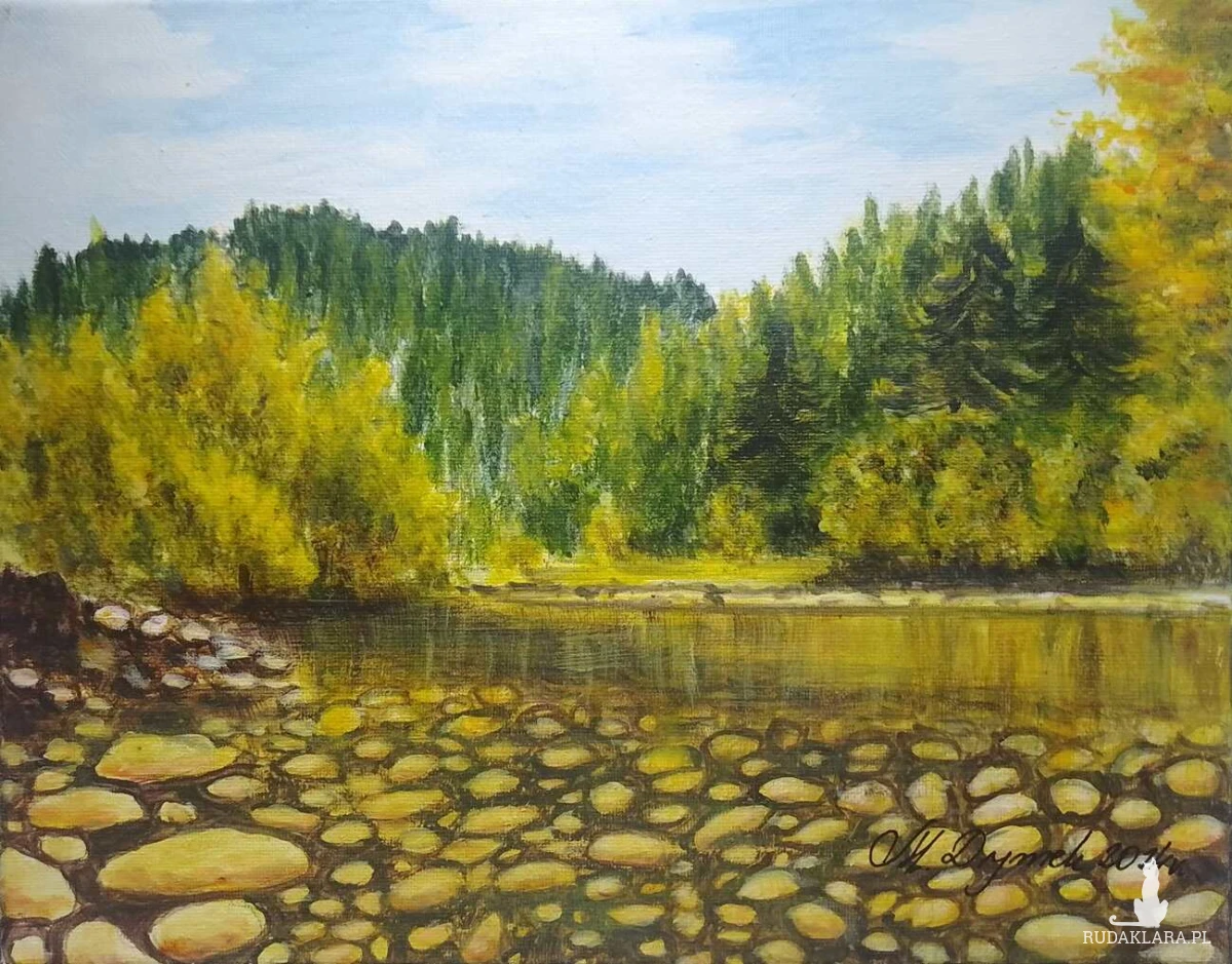 Jeden z kilkudziesięciu ręcznie malowanych obrazów, przedstawiających pejzaże, których motywem przewodnim jest piękno lasów, gór, potoków, zmieniająca się roślinność na przestrzeni dni i miesięcy. Krajobrazy tworzą serie kolorystyczne: "wiosna", "lato", "jesień", "zima".
