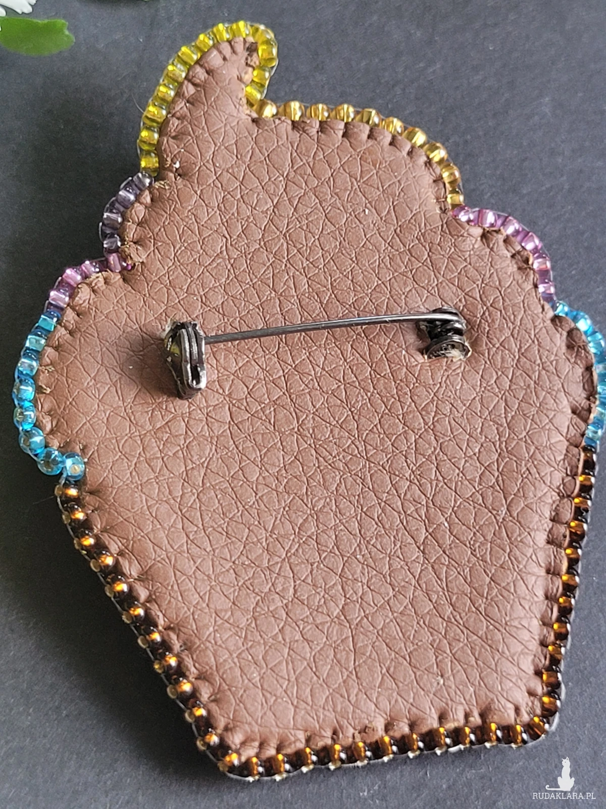 Broszka Muffinka babeczka haftowana kryształkami i koralikami Handmade