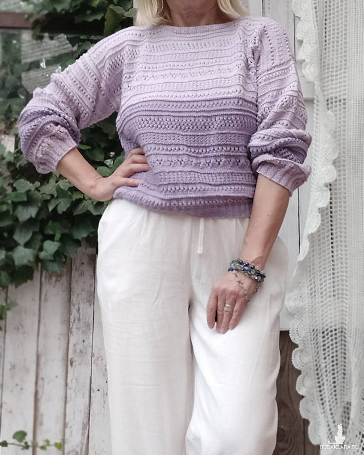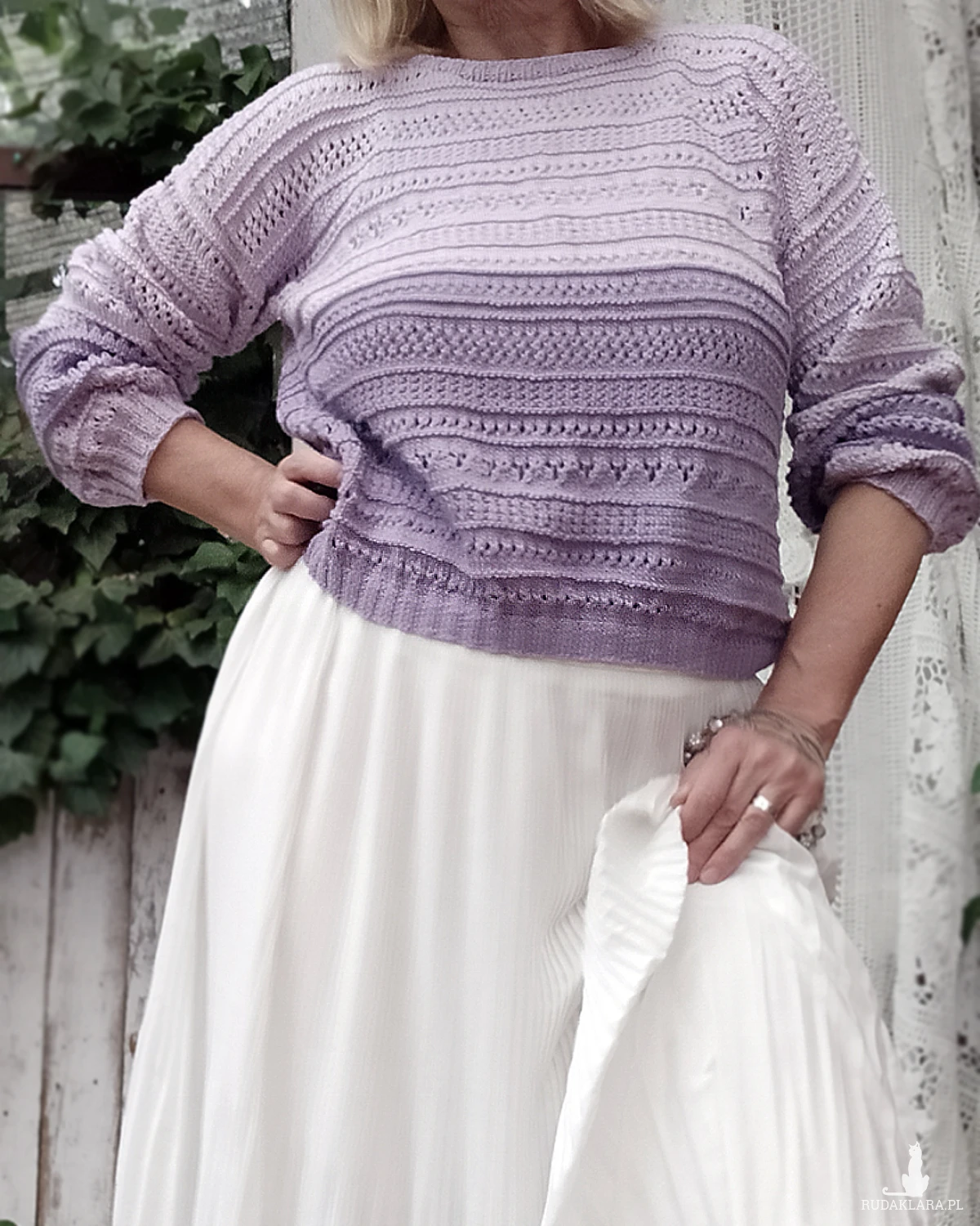 Kolory nie są intensywne, lekko stłumione: jasny liliowy i ciemniejszy lawendowy