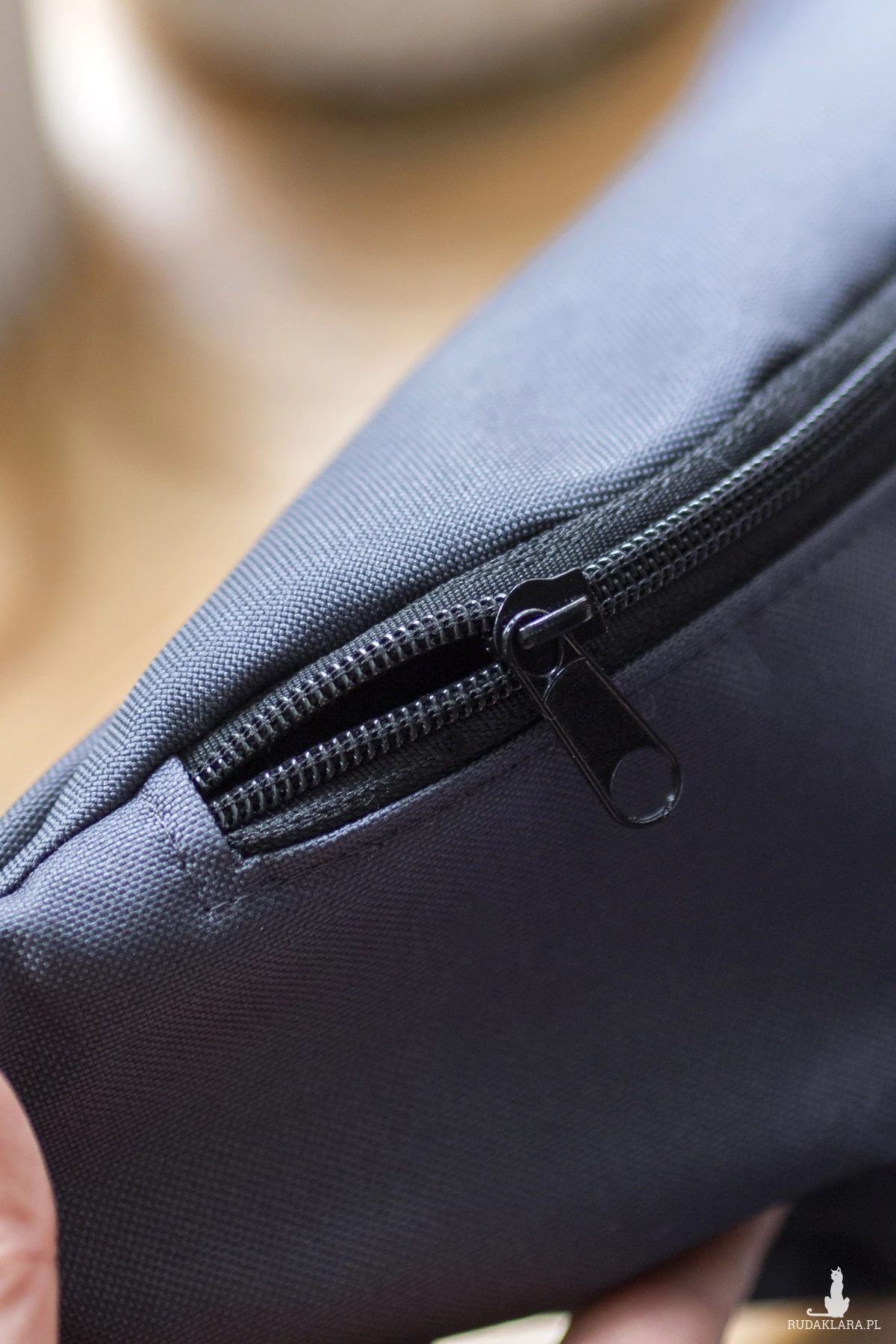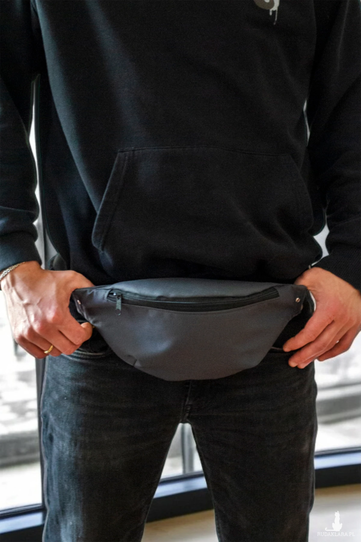 Duża nerka saszetka biodrowa w kolorze grafitowym.