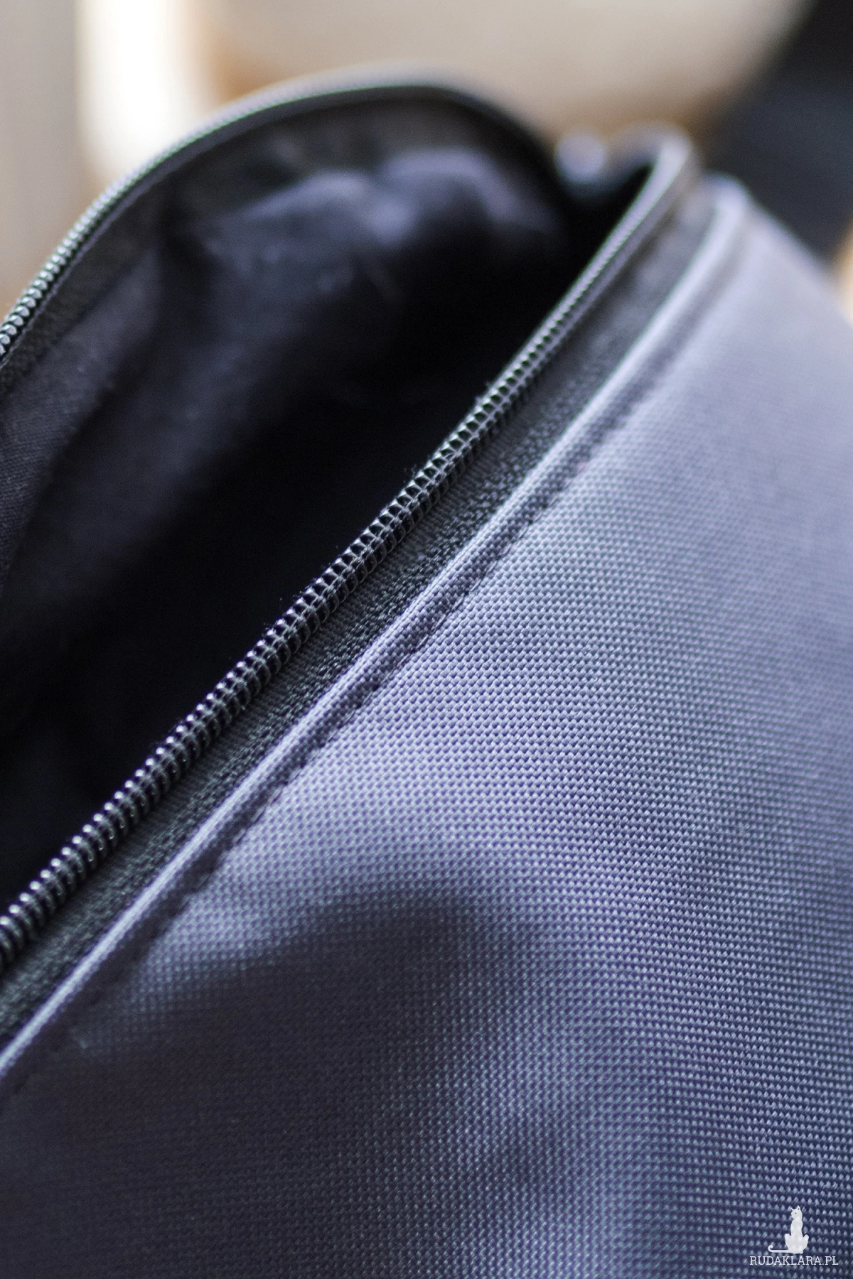 Nerka zapinana jest na suwak i zamocowana na czarnym, parcianym pasie o regulowanej długości.