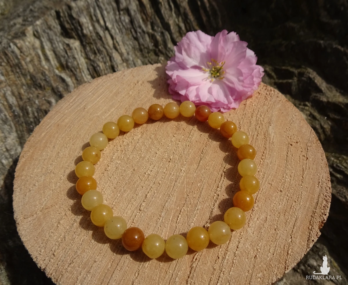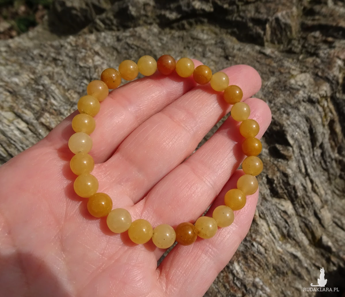 Bransoletka wykonana z kulek naturalnego jadeitu słonecznego wielkości 6mm, na silikonowej gumce.