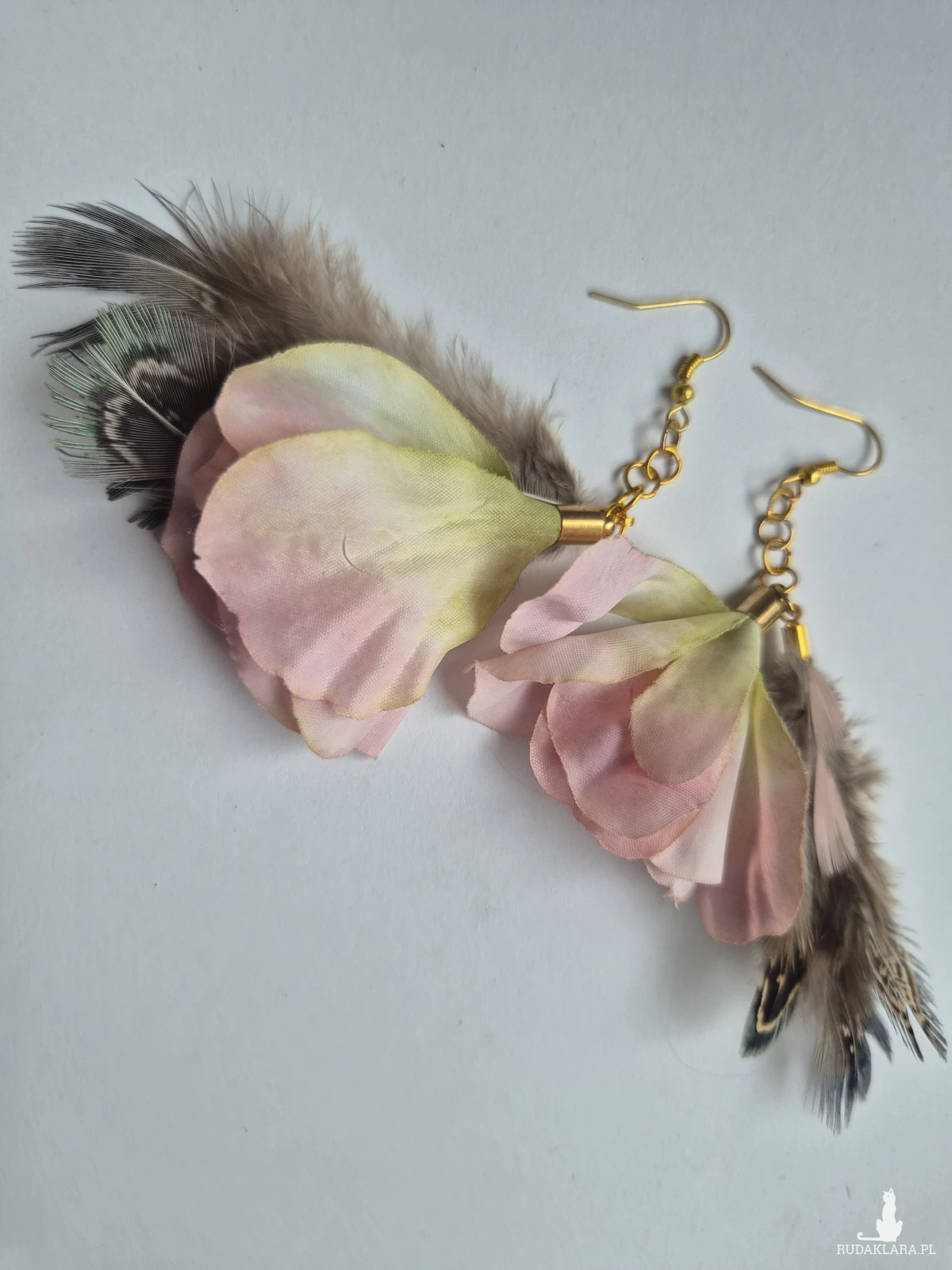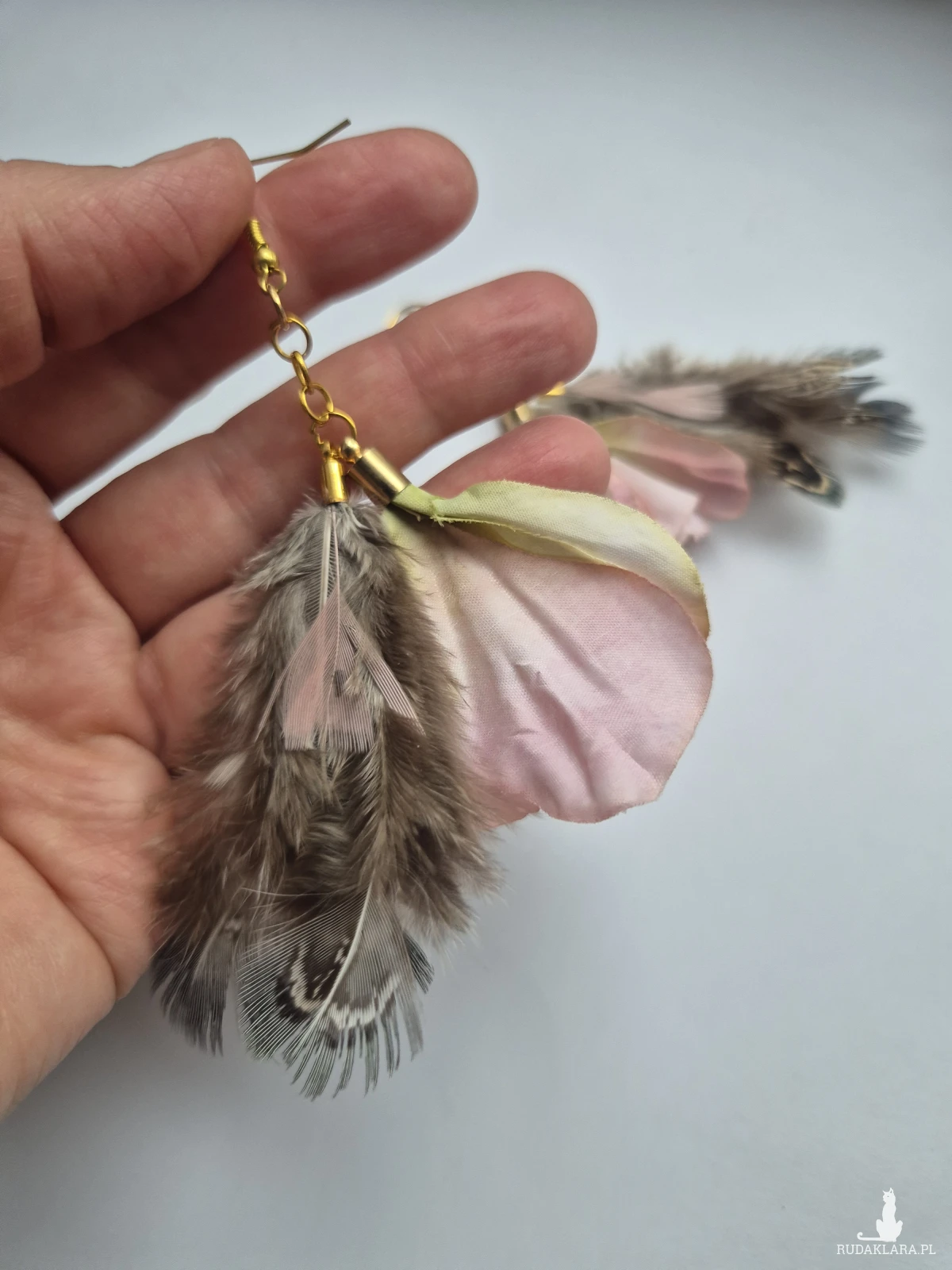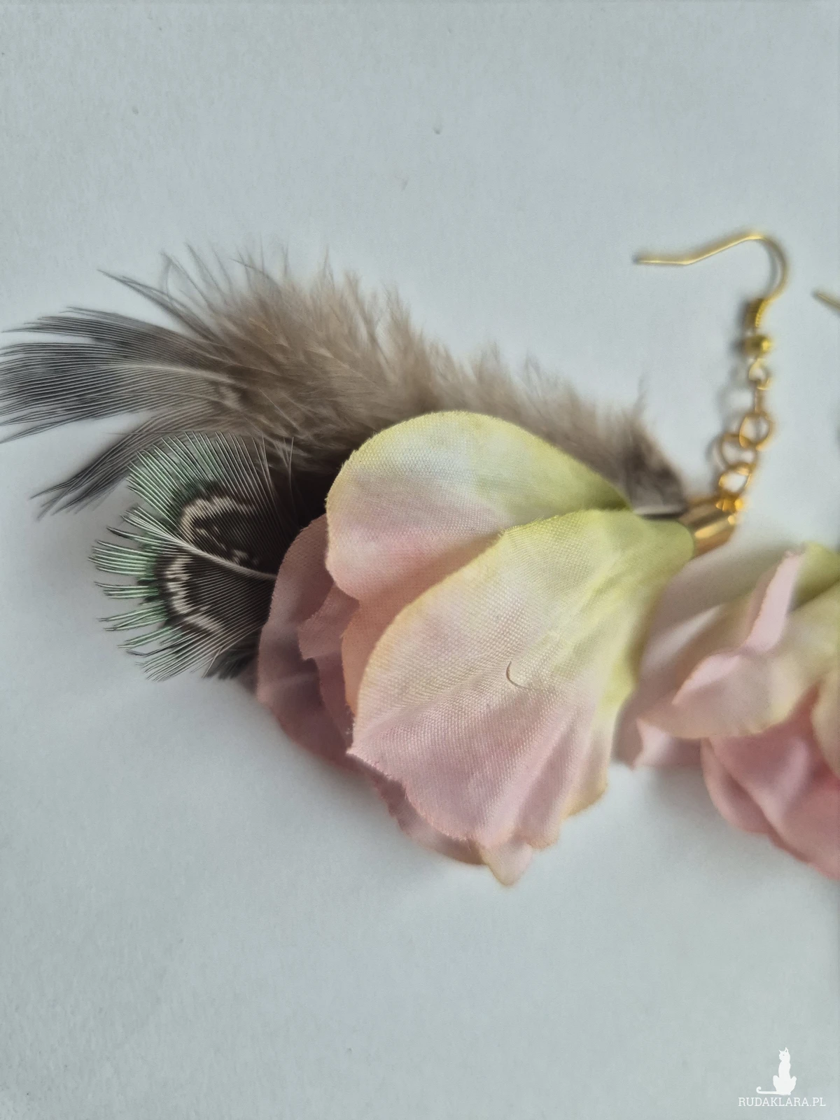 Kolczyki delikatne pióra i kwiaty bardzo stylowe polecam zwracają uwagę duże leciutkie cudne Box X1