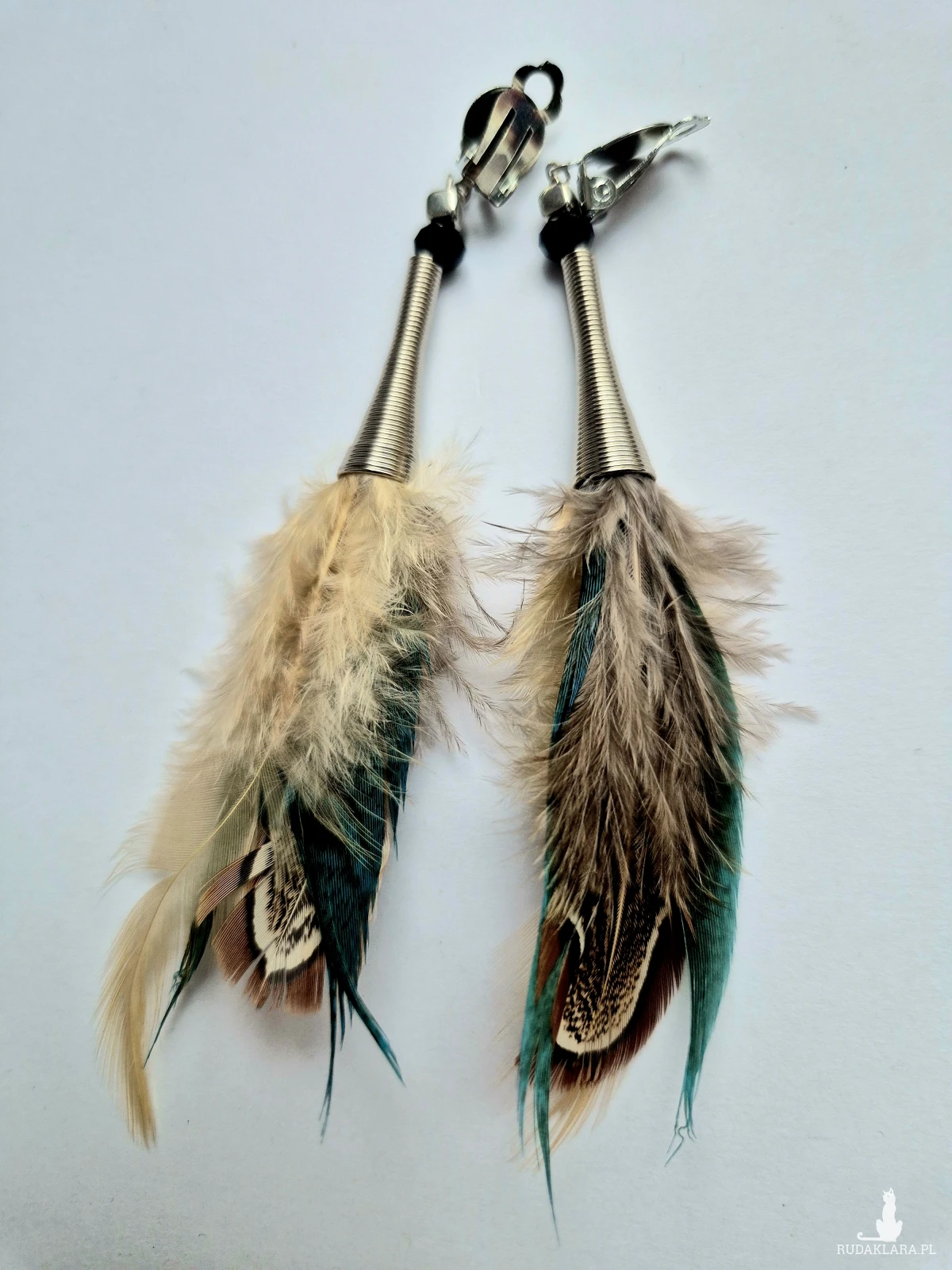 Klipsy długie pióra kolorowe