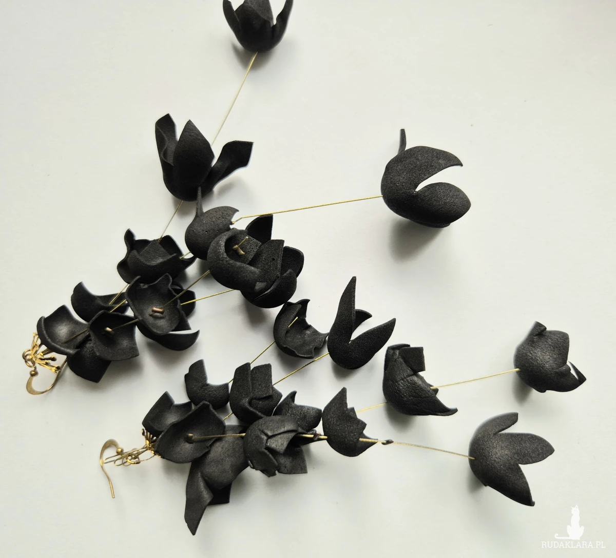 Kolczyki czarne kwiaty dlugie bardzo stylowe polecam zwracają uwagę duże leciutkie cudne Box X1