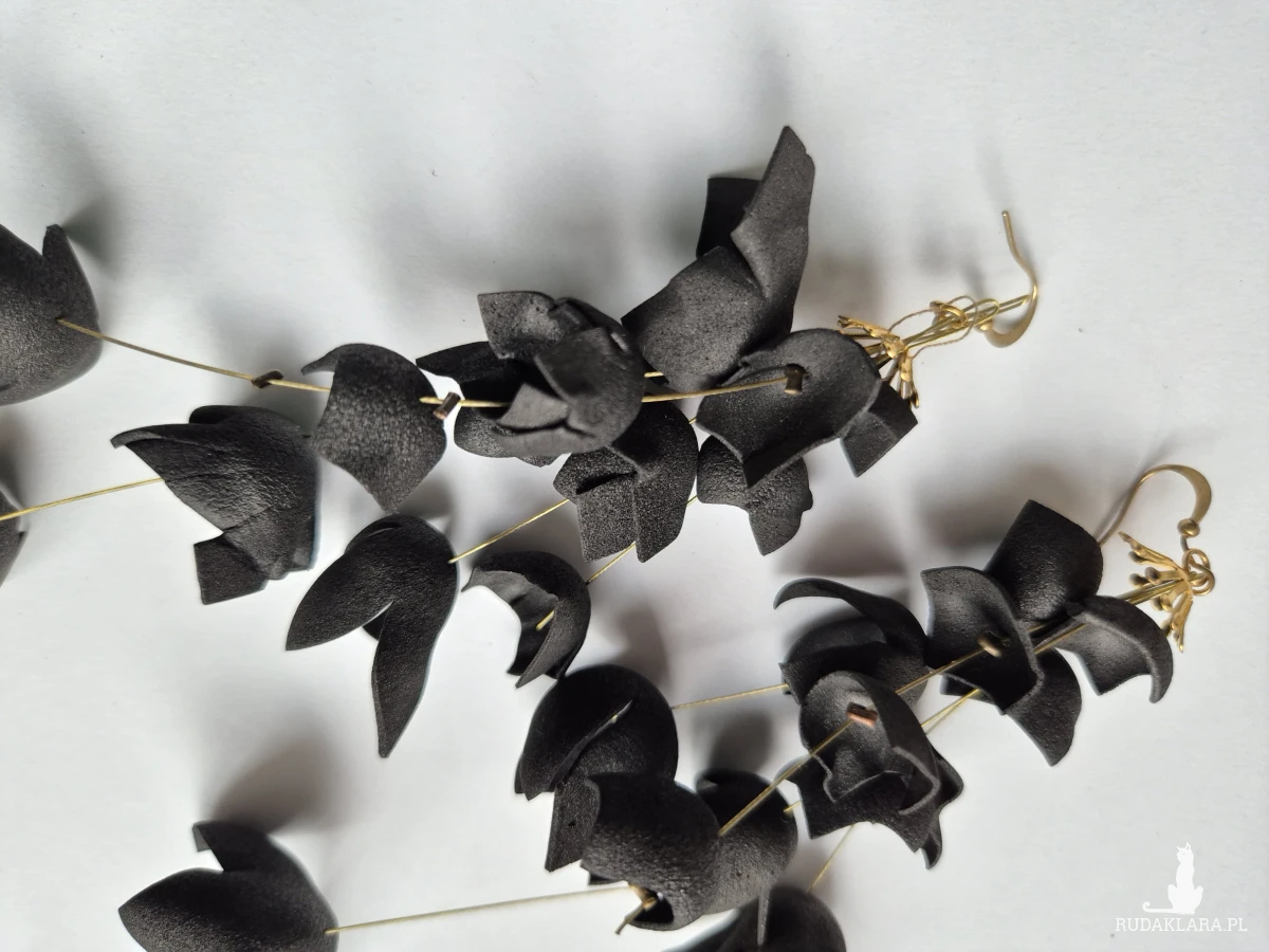 Kolczyki czarne kwiaty dlugie