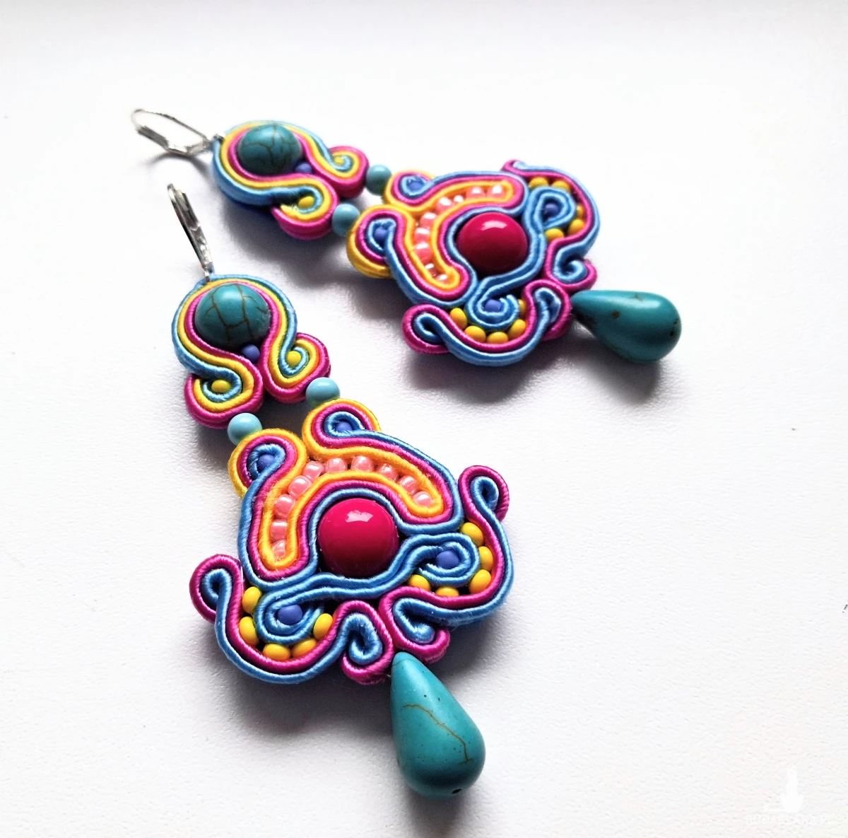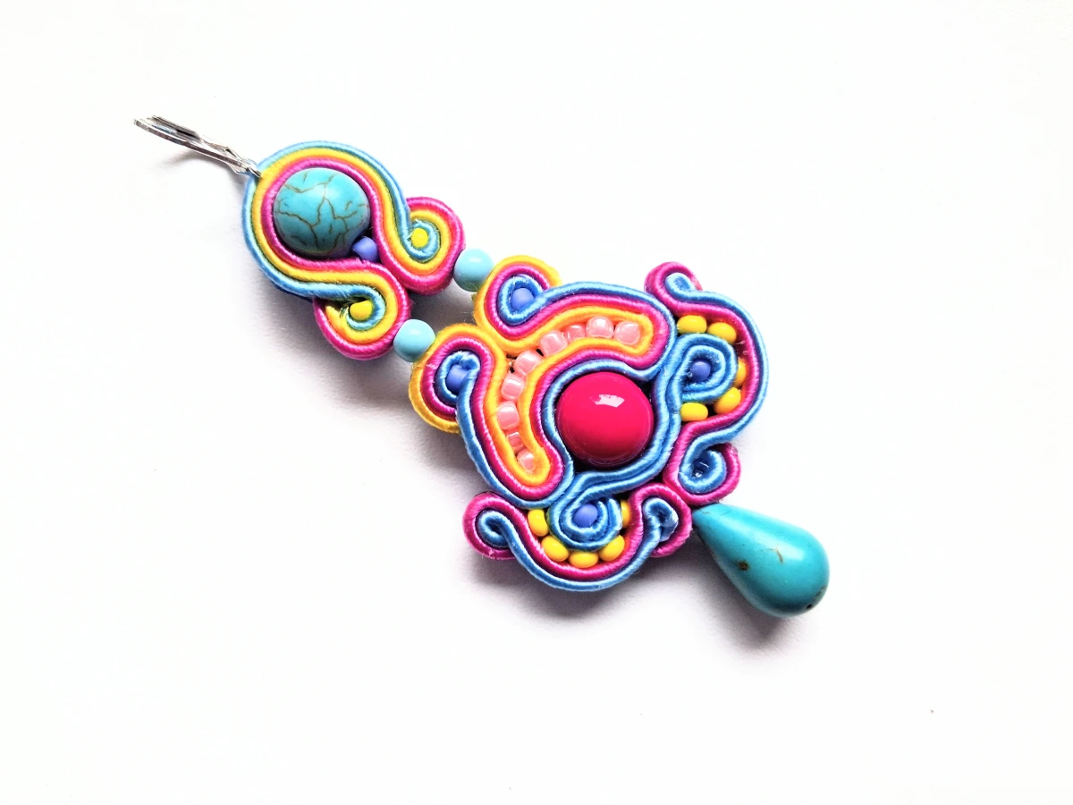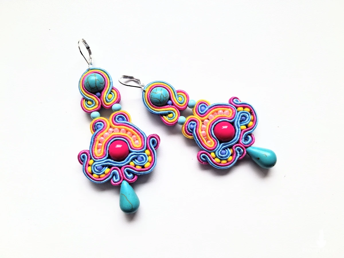 Kolczyki sutaszowe ręcznie haftowane.