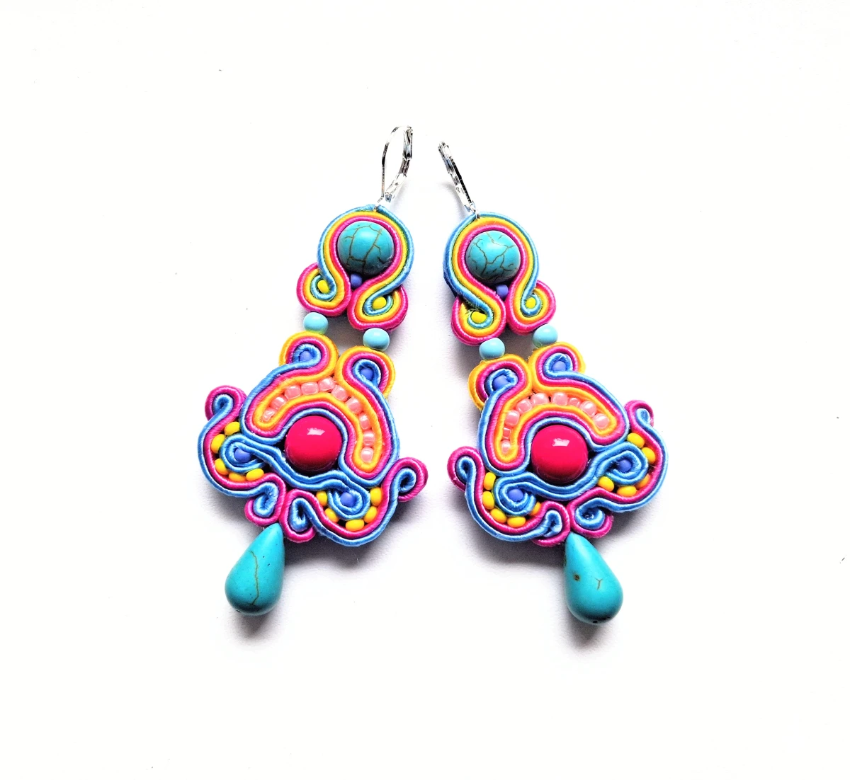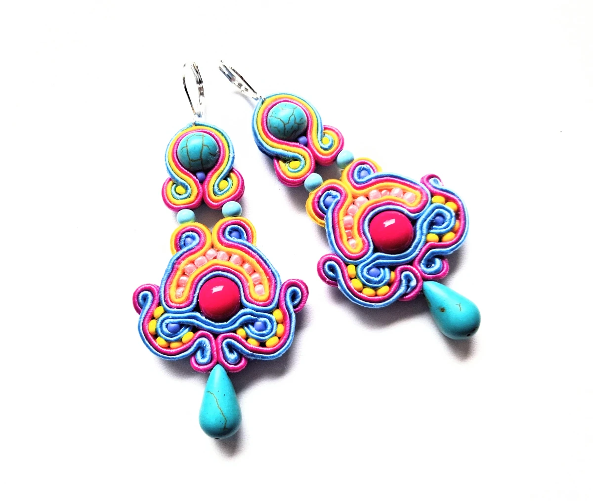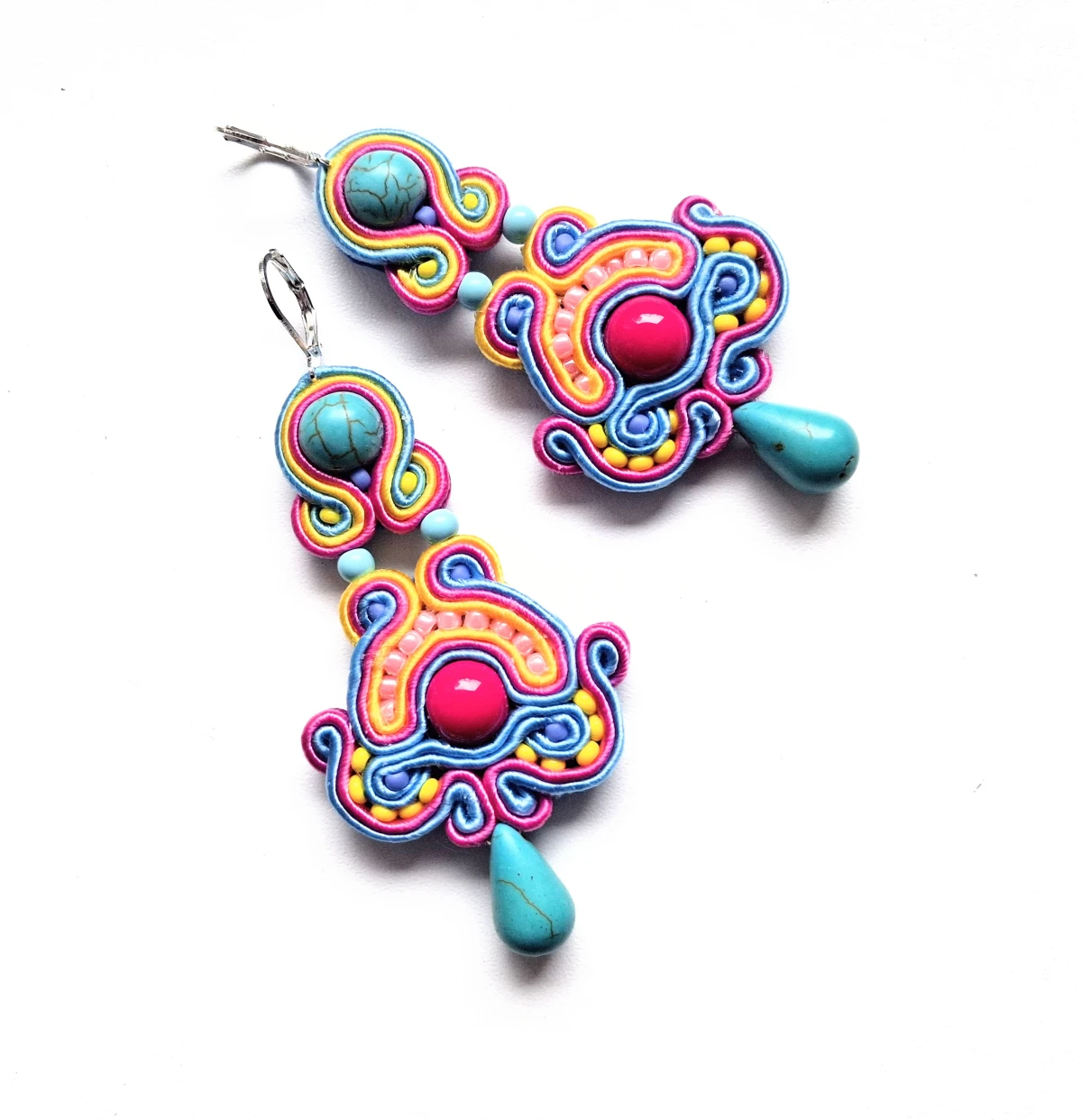 Kolczyki sutaszowe ręcznie haftowane.