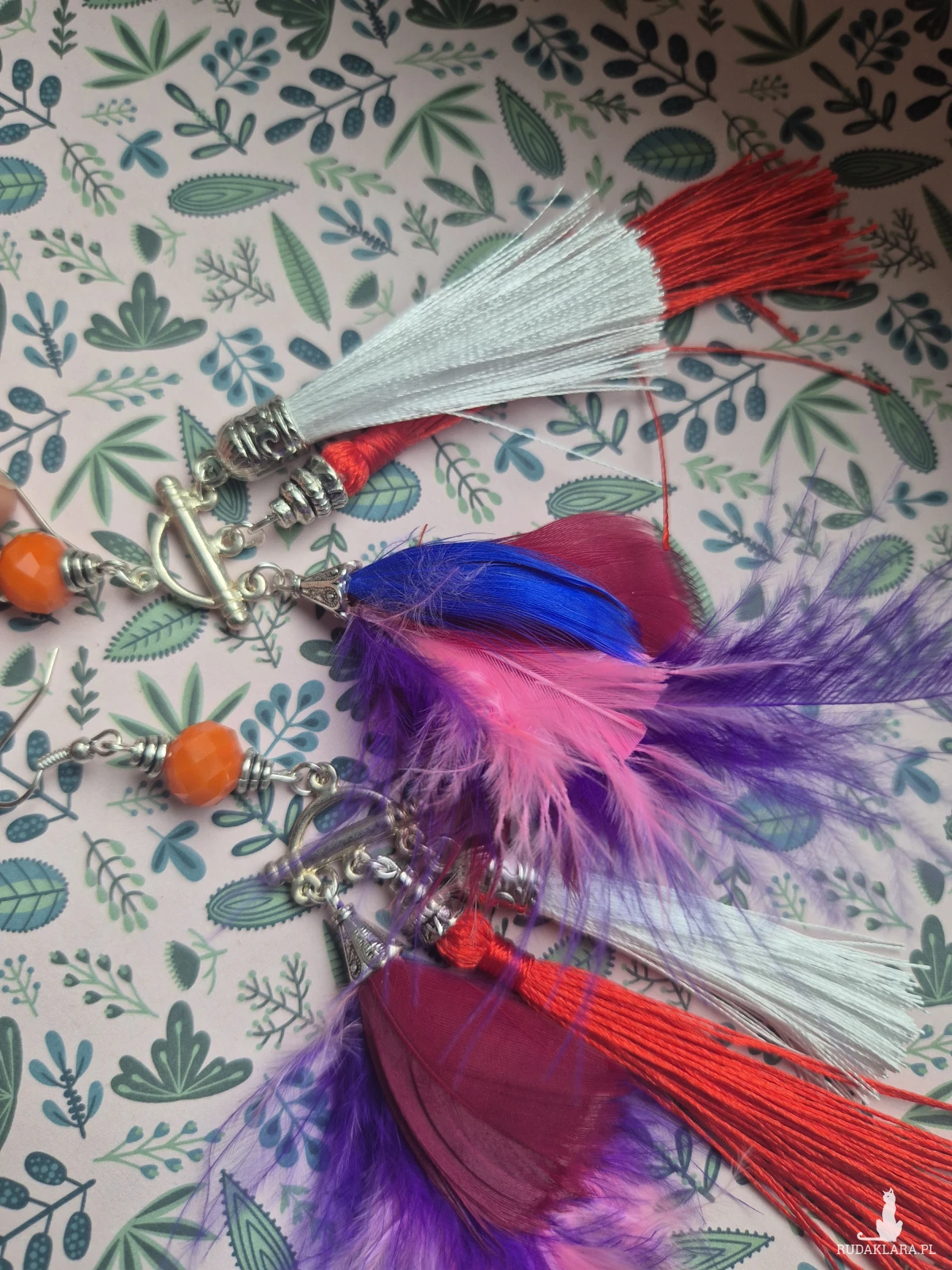 Kolczyki kolorowe chwosty bardzo stylowe polecam zwracają uwagę duże ,jedyny egzemplarz  cudne Box X1