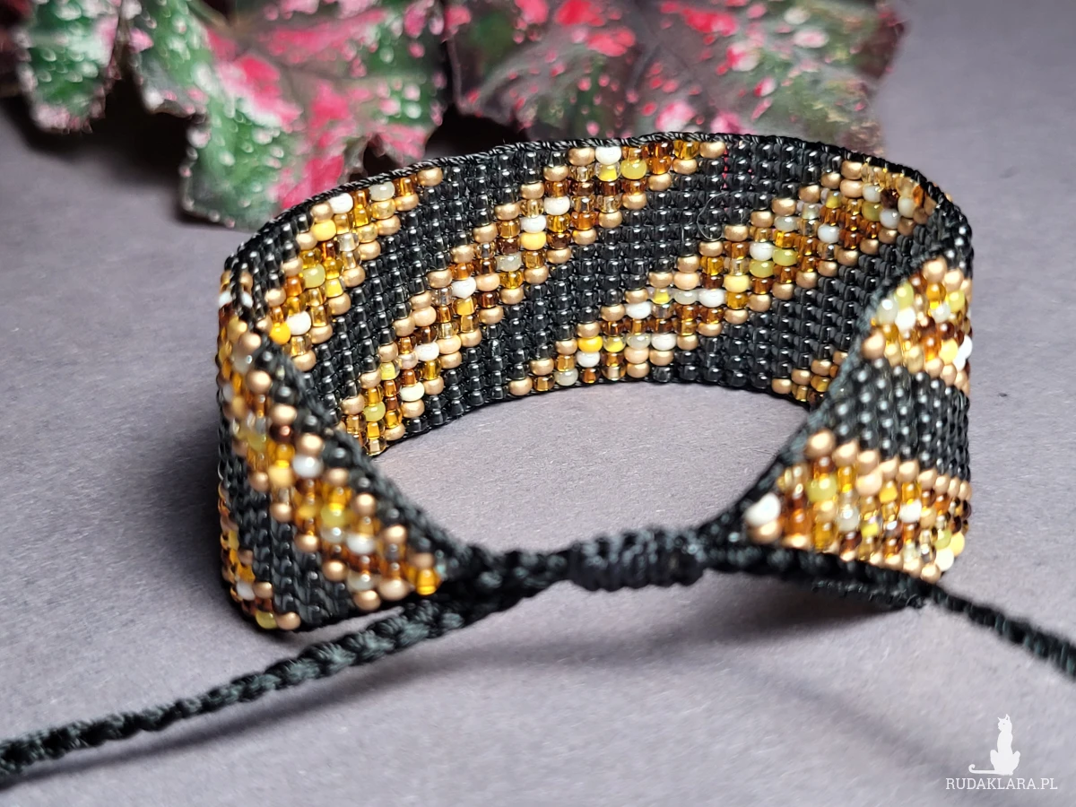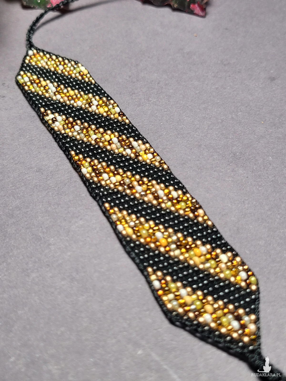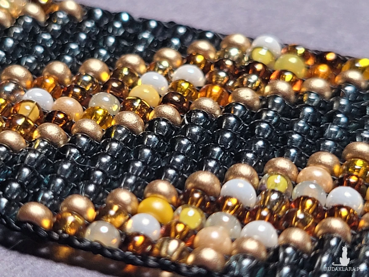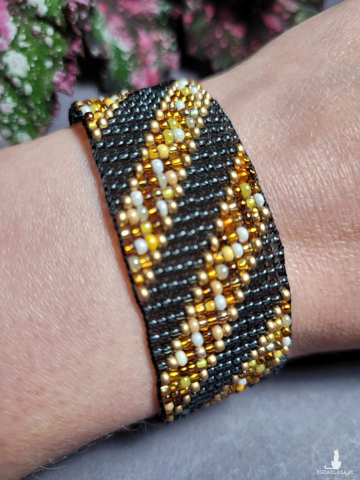 Bransoletka "Paski" własnoręcznie zrobiona na krosnie ze szklanych koralików czeskich.