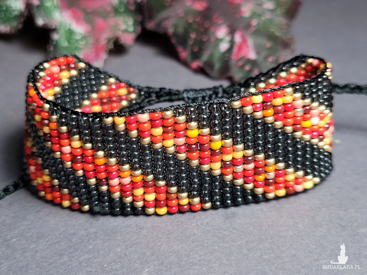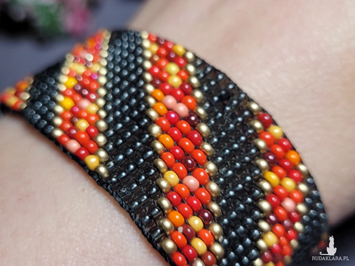 Bransoletka "Paski" własnoręcznie zrobiona na krosnie ze szklanych koralików czeskich.