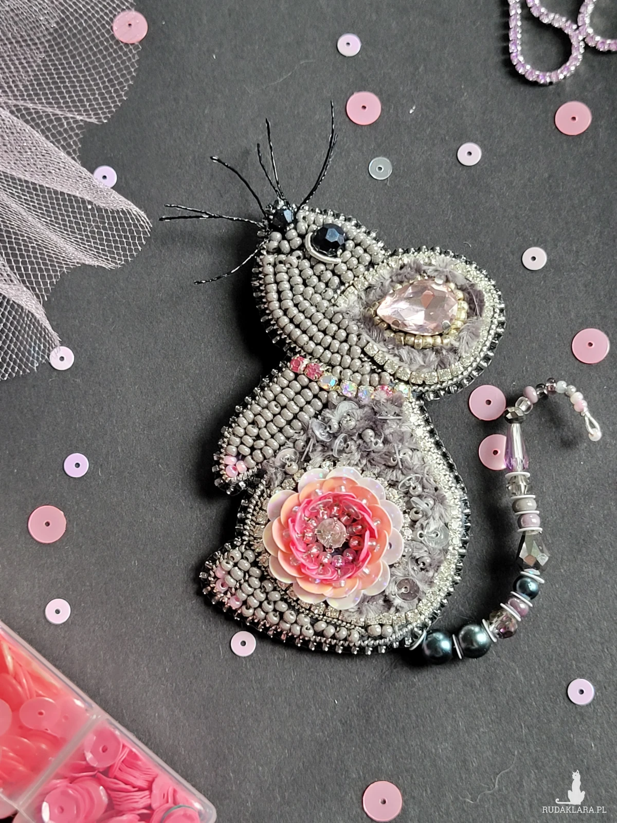 Zanurz się w świat baśni z tą uroczą broszką w kształcie myszki! Pełna subtelnych detali, wykonana z wielką precyzją i sercem – to idealny dodatek dla osób ceniących rękodzieło i oryginalność.