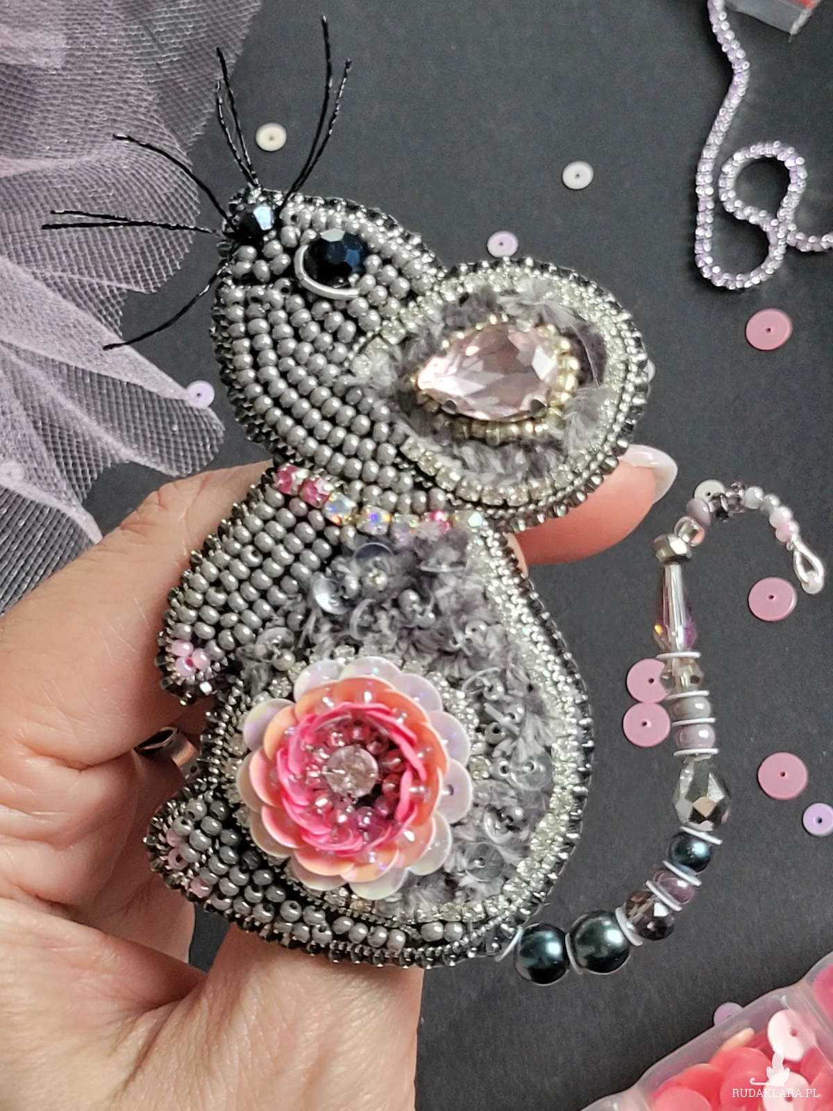 🐭✨ Ręcznie wykonana broszka "Myszka z różą" ✨🐭