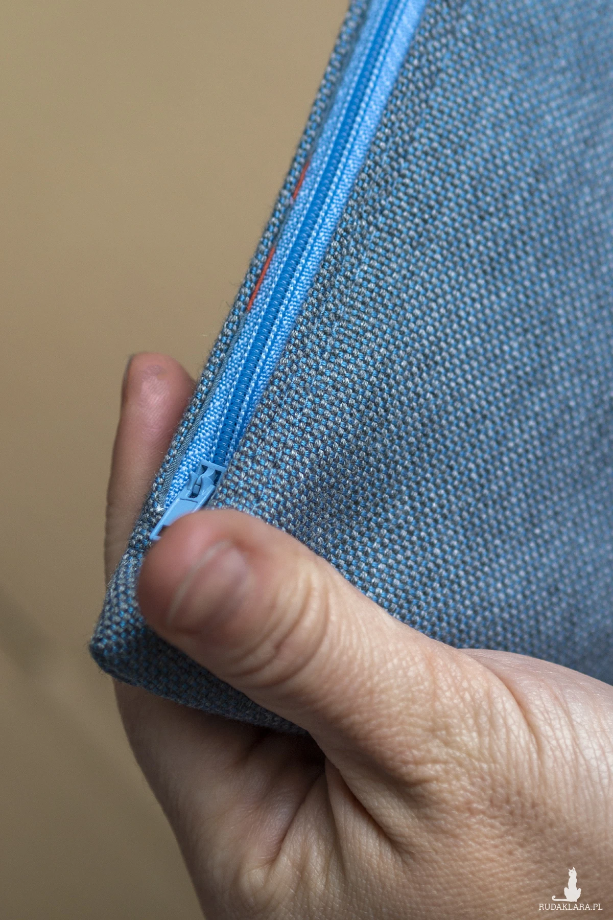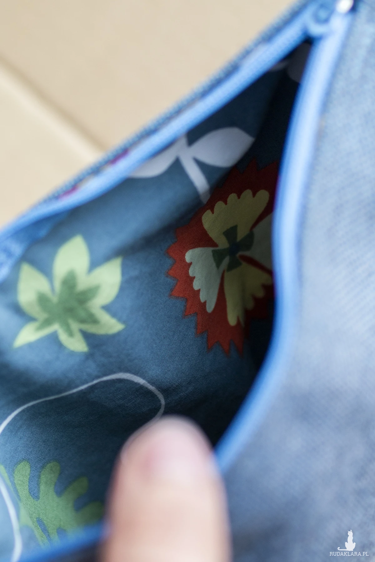 Kosmetyczka jest zapinana na suwak, w środku wszyta bawełniana podszewka w kwiaty.