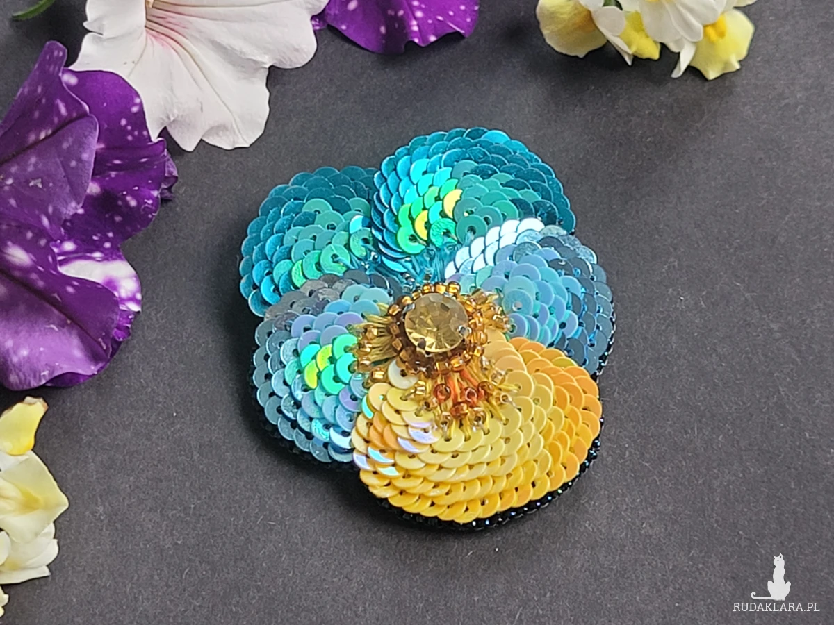 🌸✨ Broszka kwiatek Bratki z cekinów i koralików ✨🌸