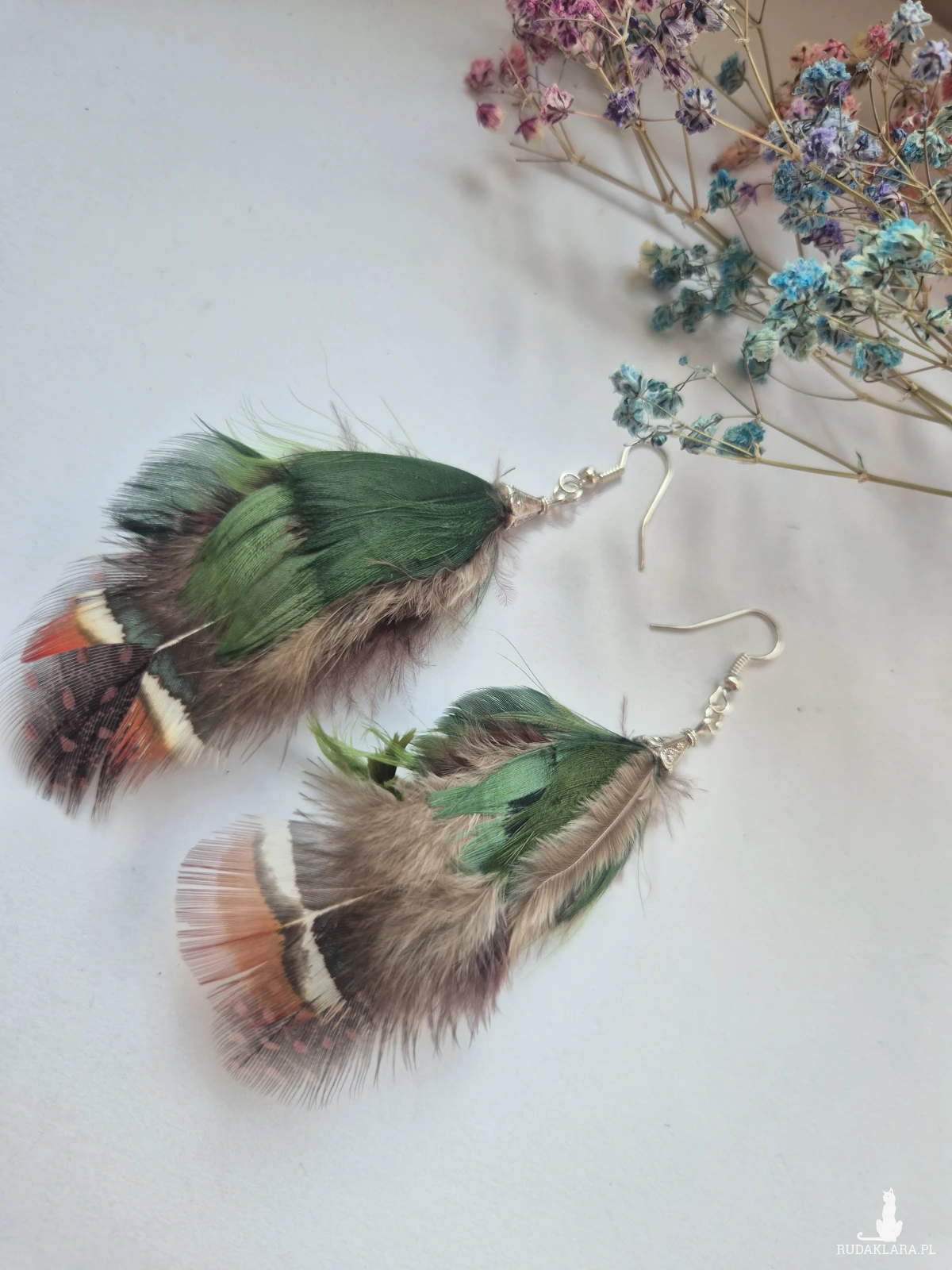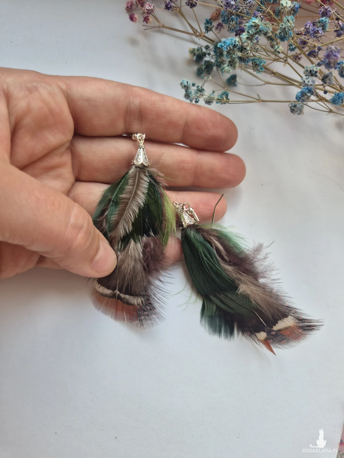 Kolczyki zielone pióra eleganckie delikatne zwracające uwagę polecam Box X1