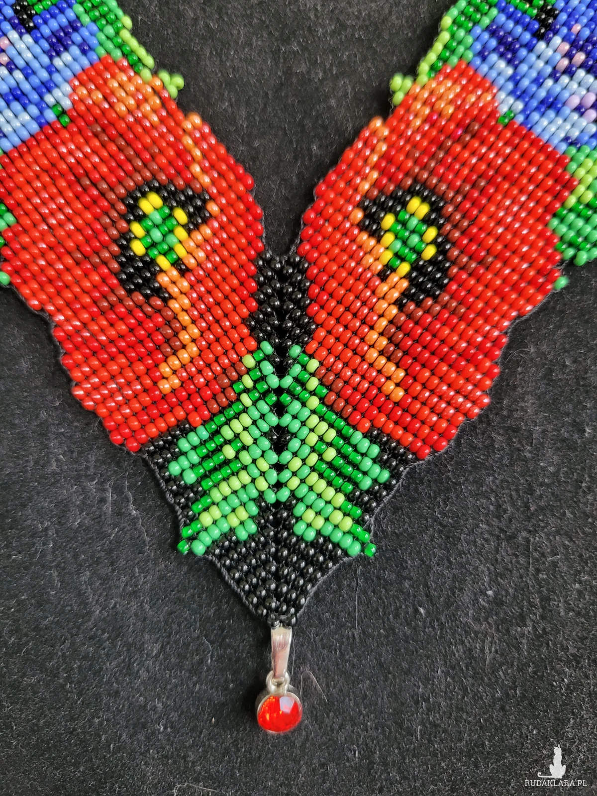 🔹 Naszyjnik – szeroki w kształcie litery V, ozdobiony czerwoną cyrkonią.