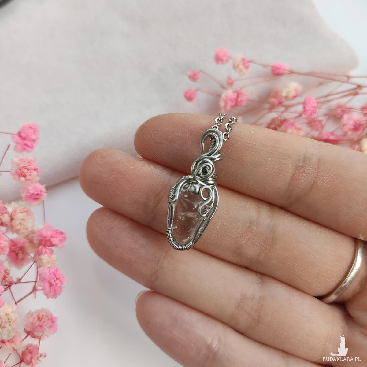 Naszyjnik został wykonany ręcznie z wykorzystaniem techniki wire wrapping. Jest to metoda polegająca na precyzyjnym oplataniu kamienia cienkim drutem, bez użycia kleju czy lutowania. Dzięki temu każdy egzemplarz jest niepowtarzalny i nosi ślady pracy ludzkich rąk. Nie jest to masowa produkcja – każdy naszyjnik z kryształem górskim powstaje z dbałością o detale i szacunkiem do naturalnego piękna kamienia.