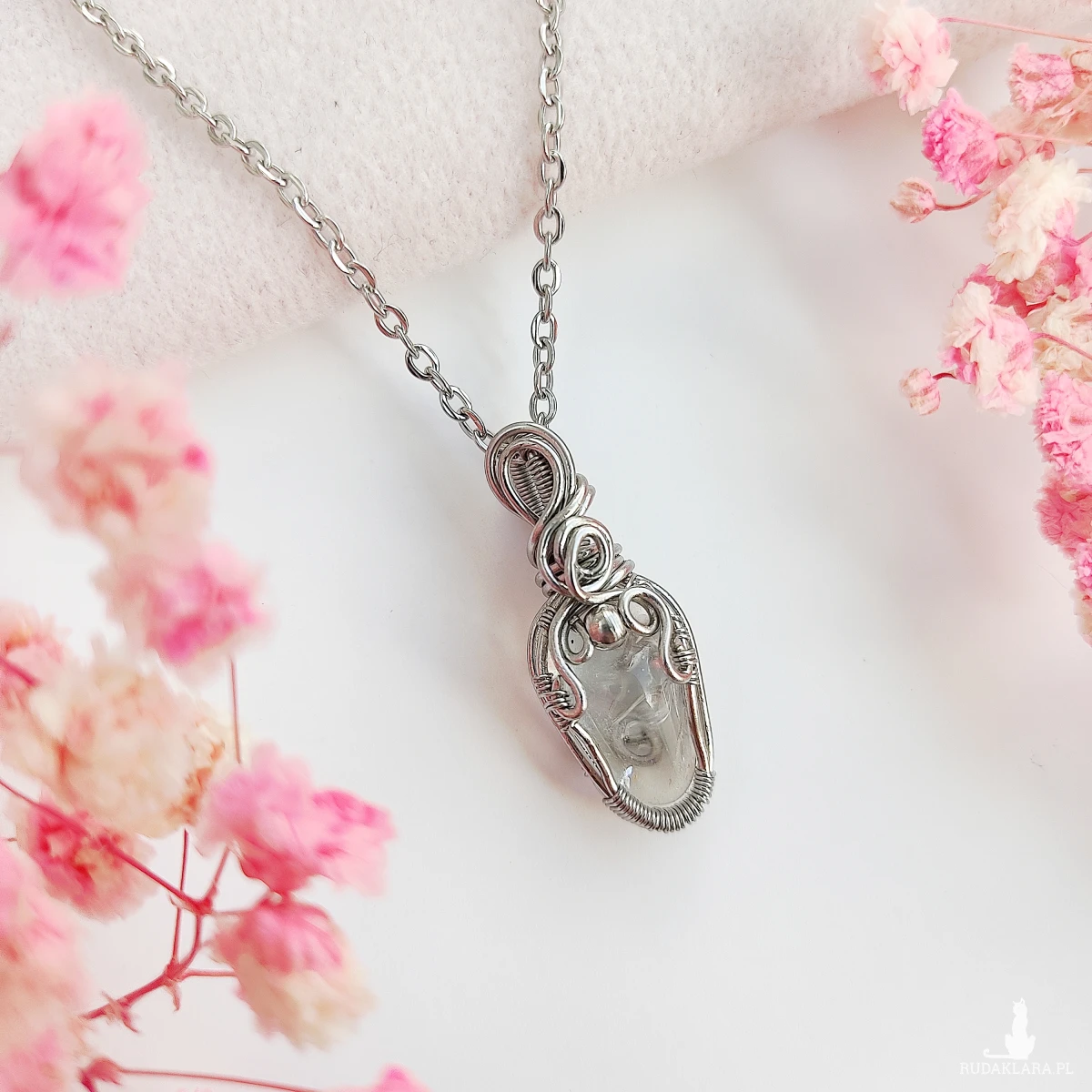Naszyjnik Kryształ Górski ręcznie robiony. Wykonany techniką wire wrapping z drutów ze stali chirurgicznej.
