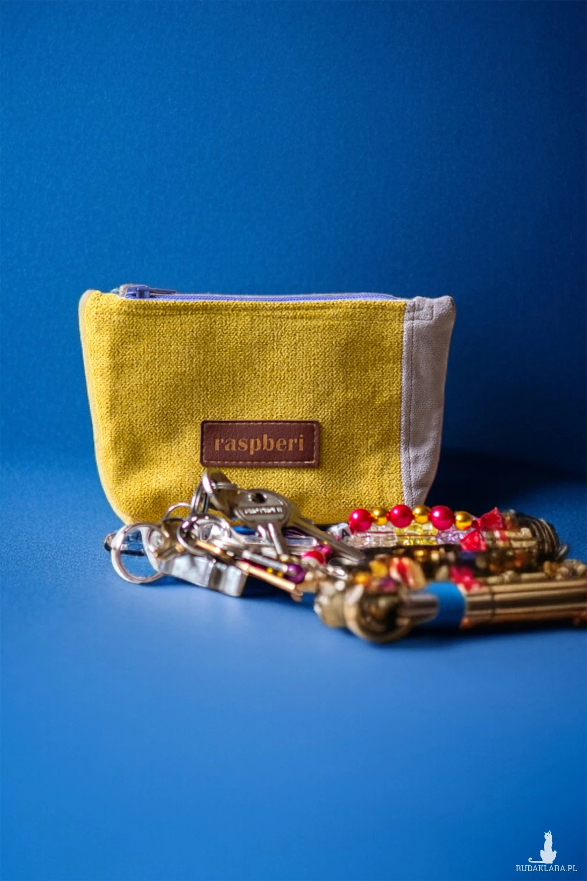 Etui na klucze wykonane z dwóch rodzajów kolorowych tkanin. Stworzone w duchu no waste z resztek materiałów.